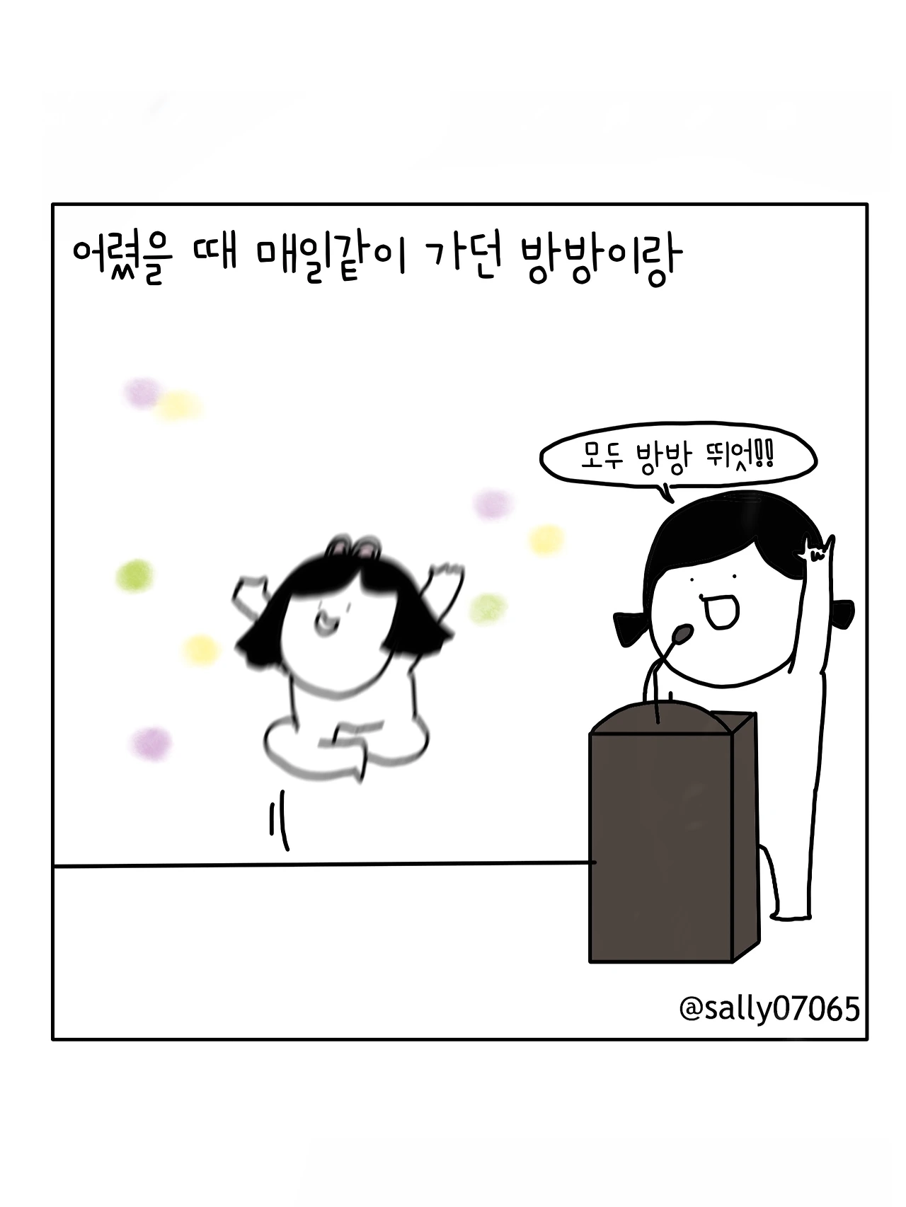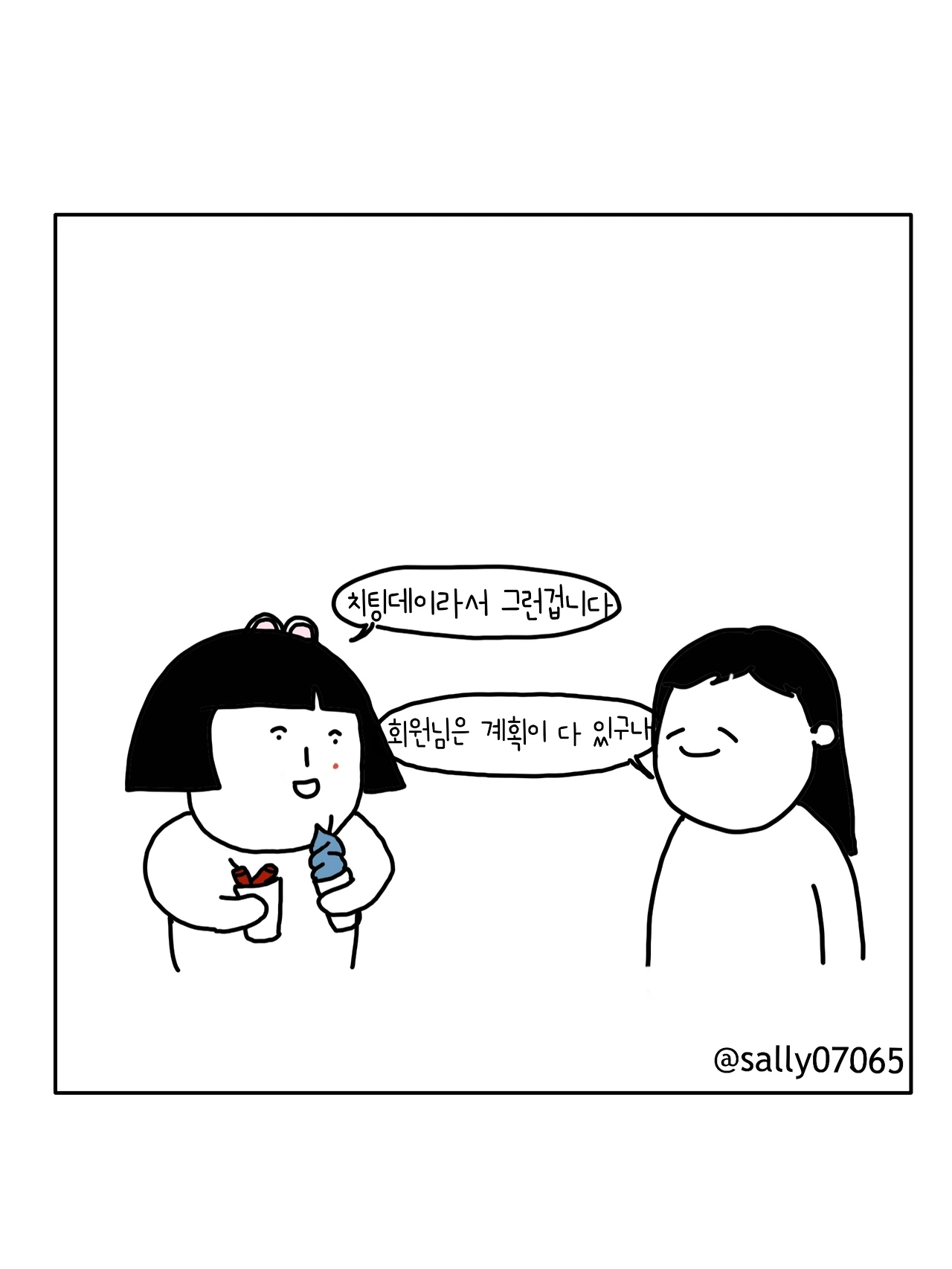 인스타계정sally07065에서 일상툰을 올리며, 블로그운영(밑 url 주소), 책 ‘내향적인 사람 중 가장 외향적인 사람’을 썼습니다