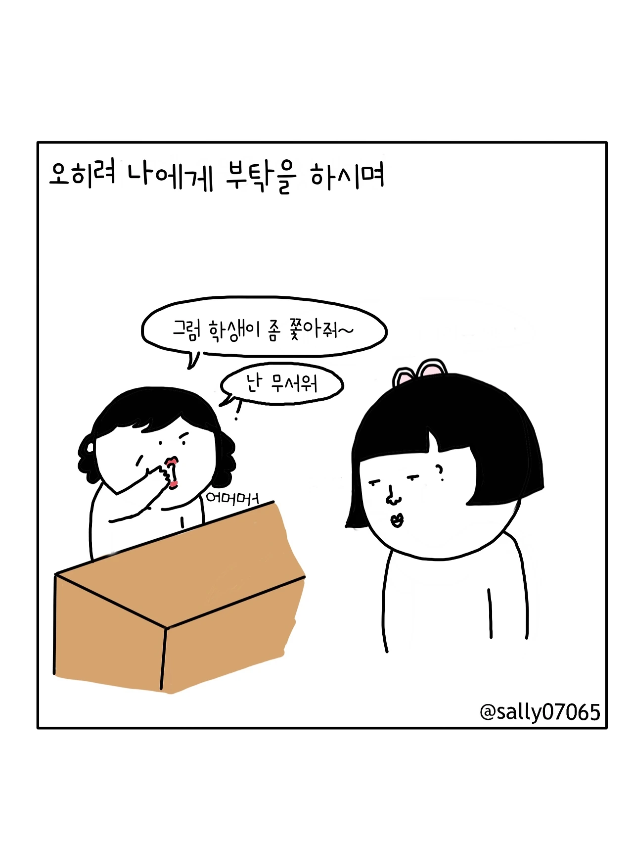 인스타계정sally07065에서 일상툰을 올리며, 블로그운영(밑 url 주소), 책 ‘내향적인 사람 중 가장 외향적인 사람’을 썼습니다