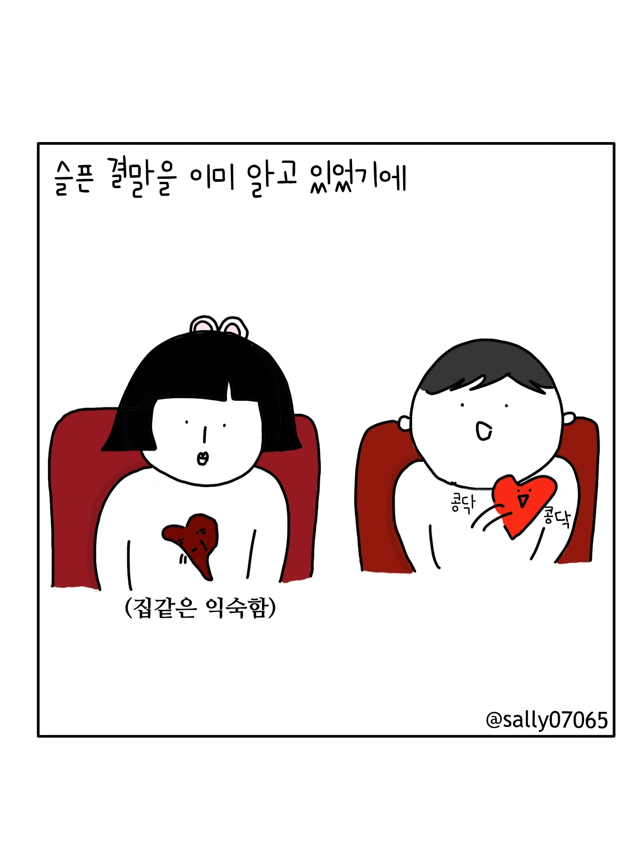 인스타계정sally07065에서 일상툰을 올리며, 블로그운영(밑 url 주소), 책 ‘내향적인 사람 중 가장 외향적인 사람’을 썼습니다
