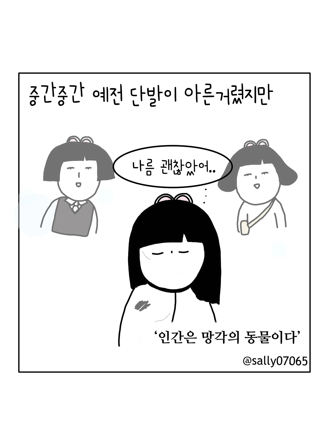 인스타계정sally07065에서 일상툰을 올리며, 블로그운영(밑 url 주소), 책 ‘내향적인 사람 중 가장 외향적인 사람’을 썼습니다
