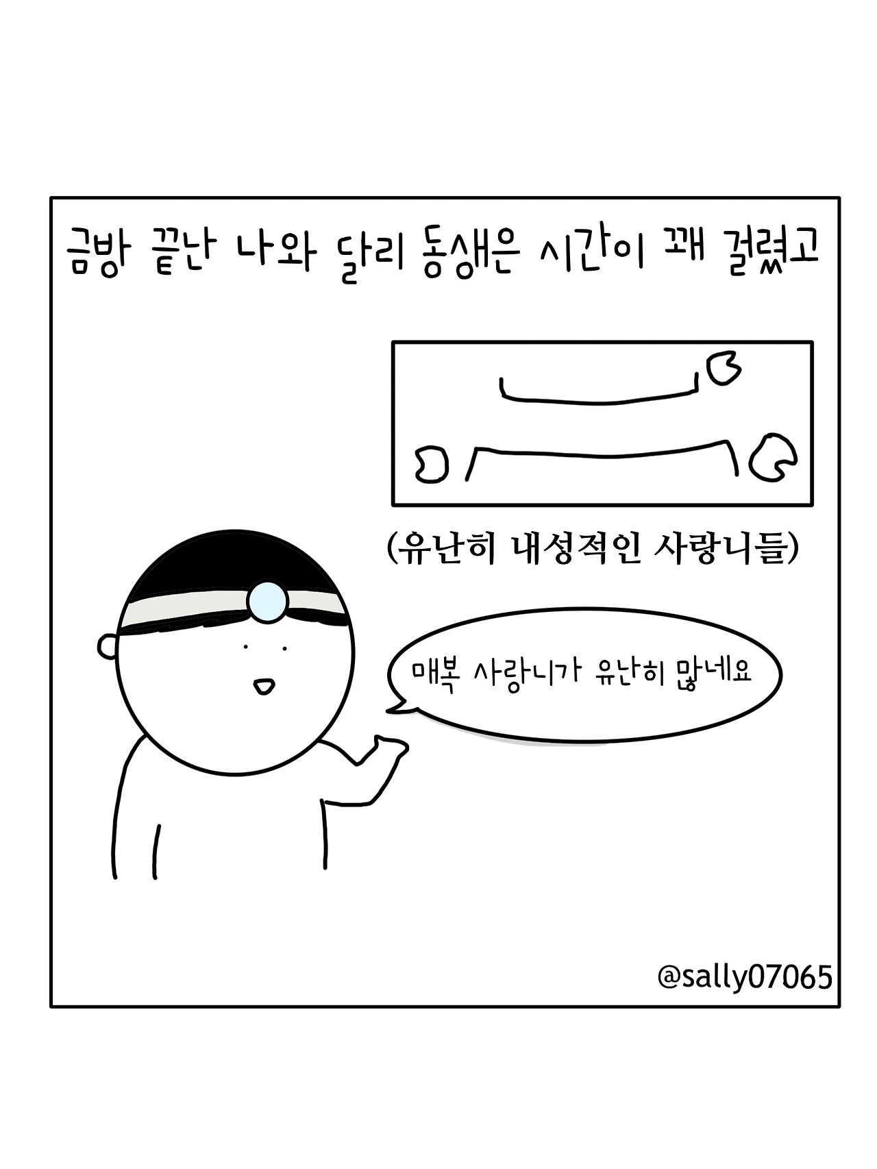 인스타계정sally07065에서 일상툰을 올리며, 블로그운영(밑 url 주소), 책 ‘내향적인 사람 중 가장 외향적인 사람’을 썼습니다