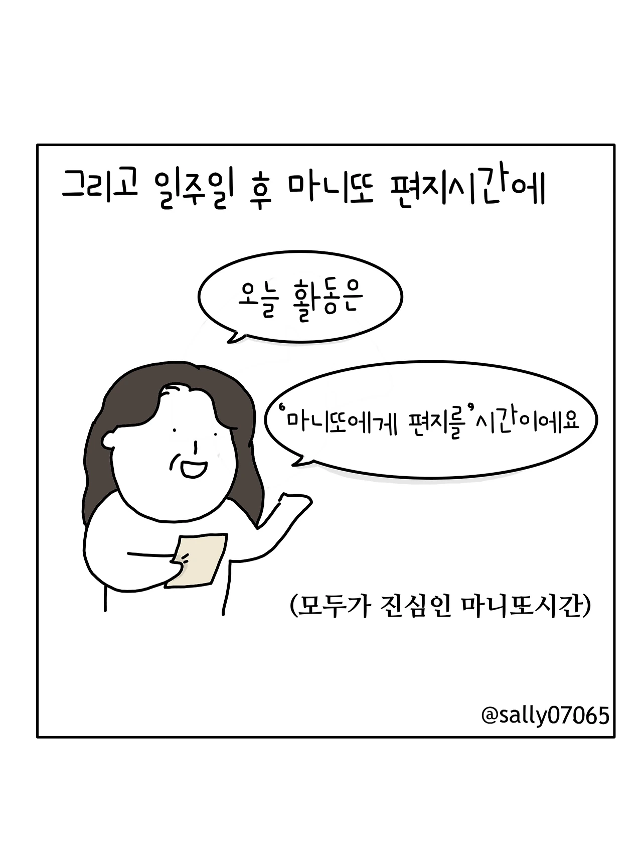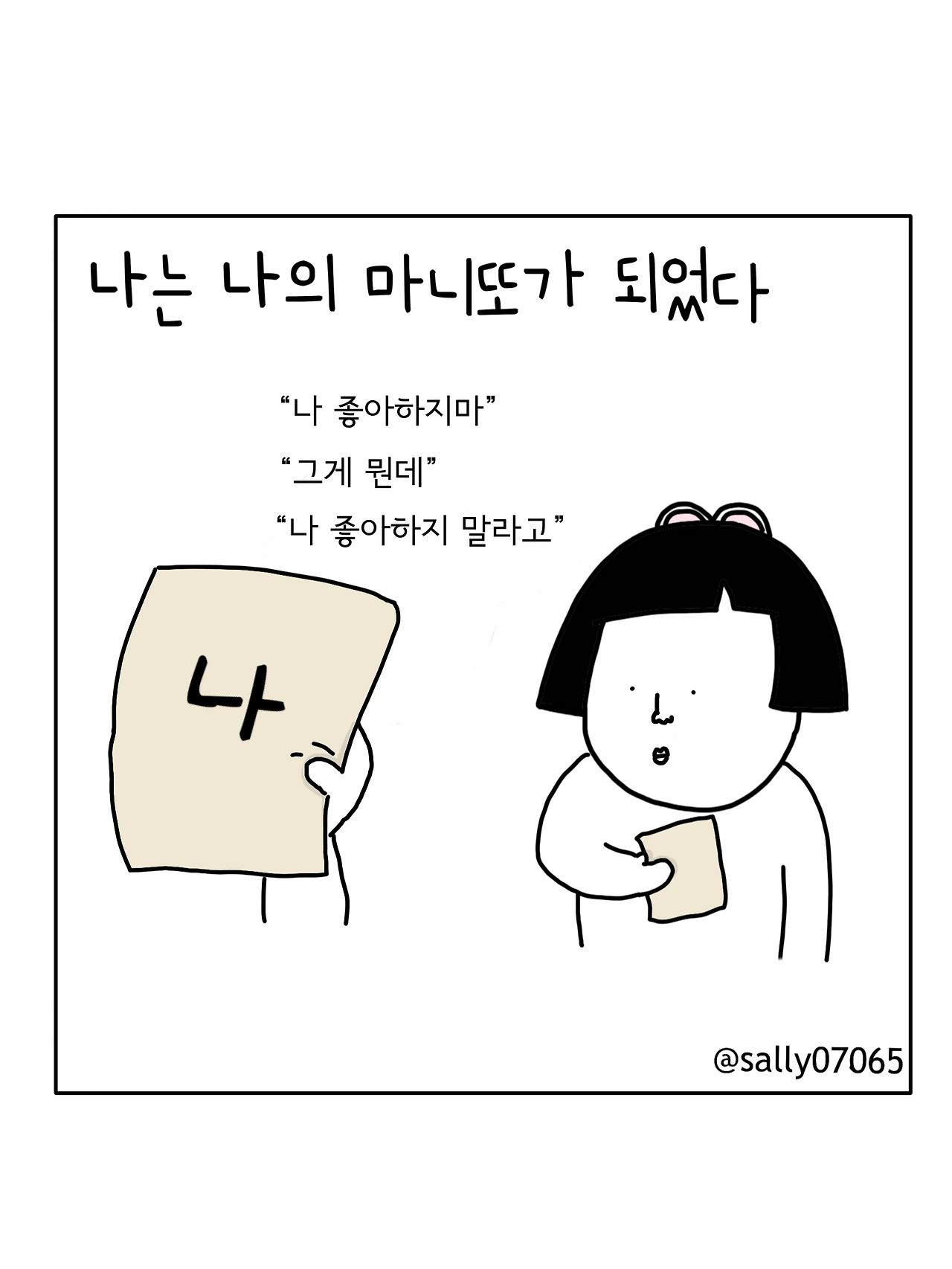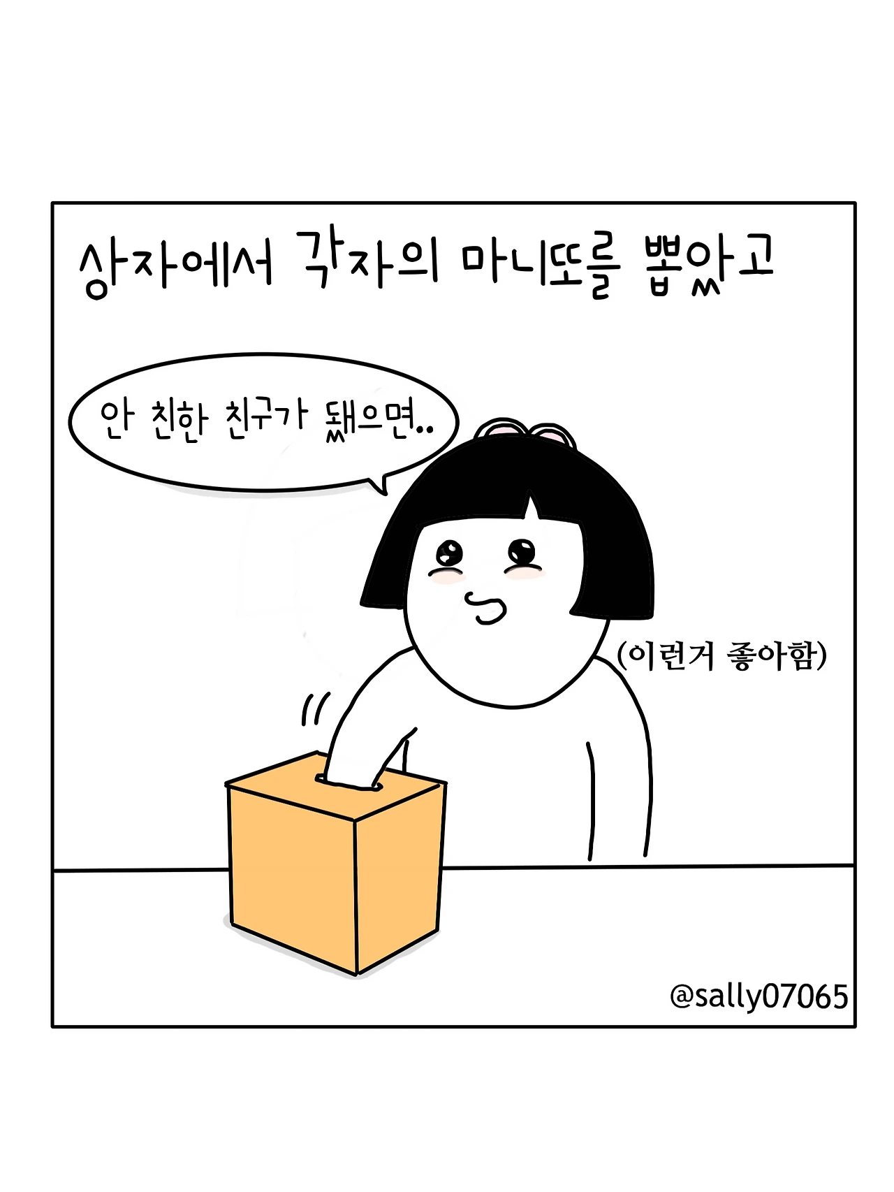 인스타계정sally07065에서 일상툰을 올리며, 블로그운영(밑 url 주소), 책 ‘내향적인 사람 중 가장 외향적인 사람’을 썼습니다