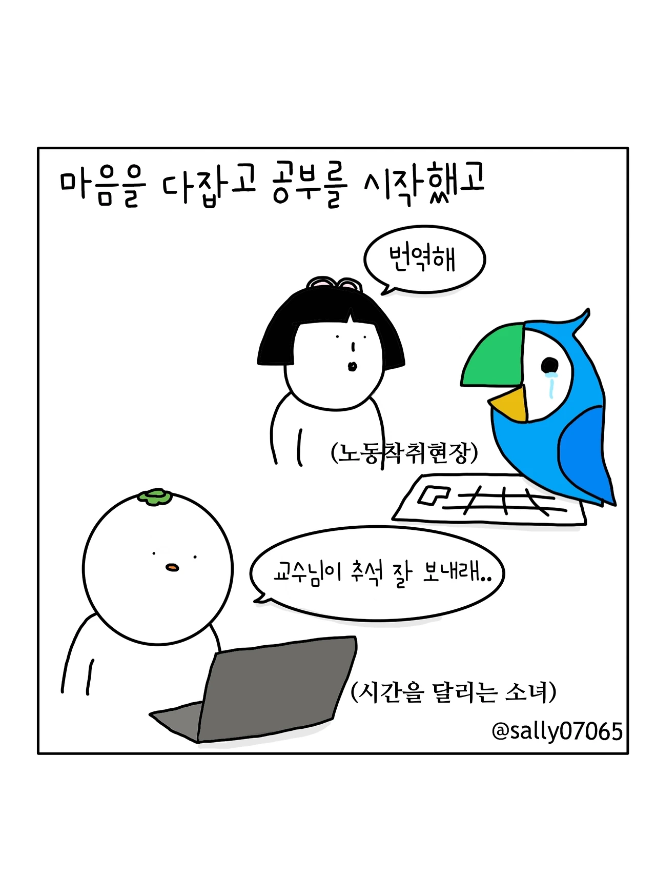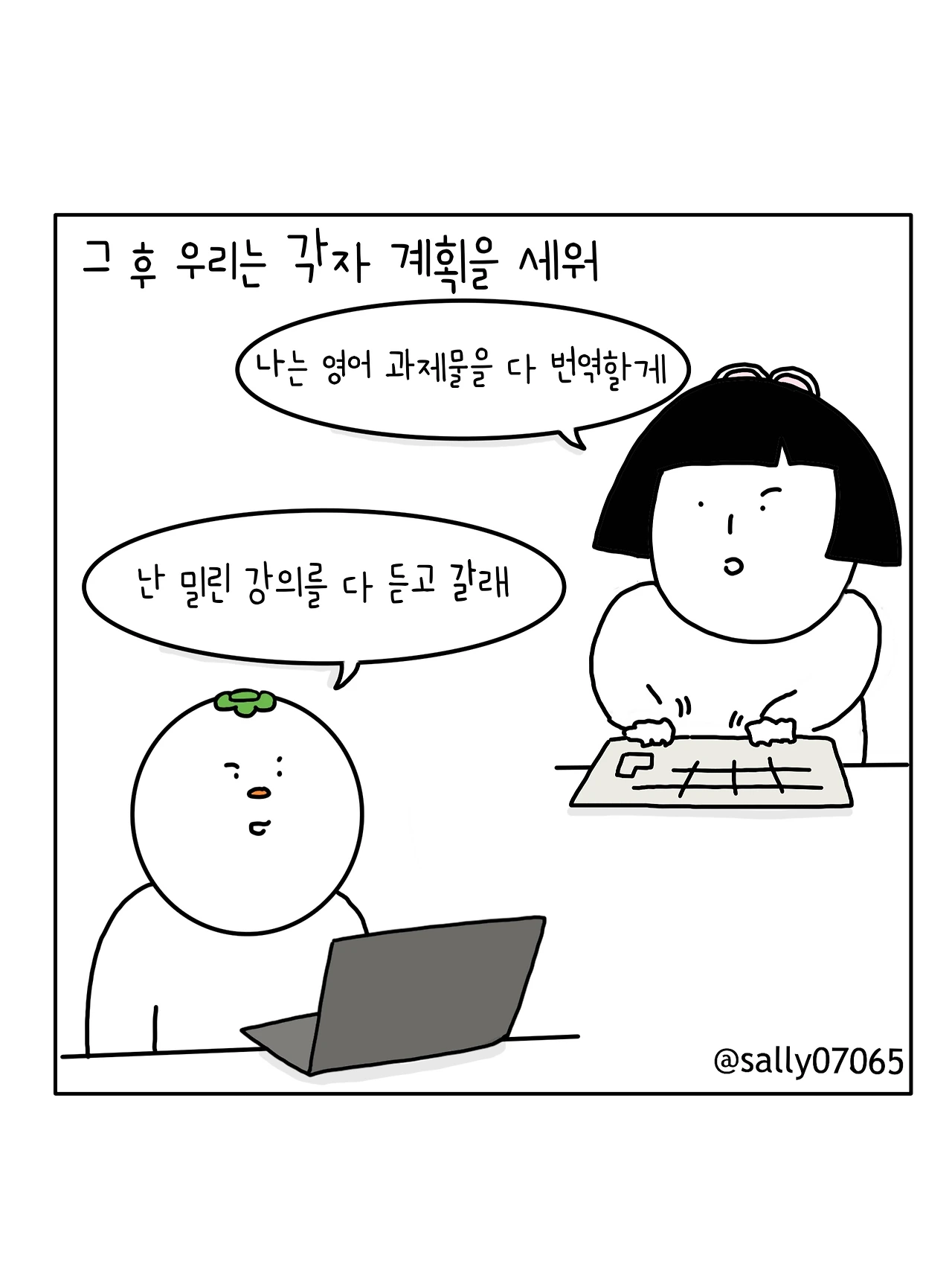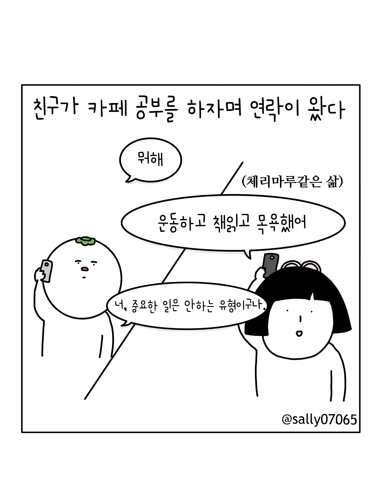 인스타계정sally07065에서 일상툰을 올리며, 블로그운영(밑 url 주소), 책 ‘내향적인 사람 중 가장 외향적인 사람’을 썼습니다