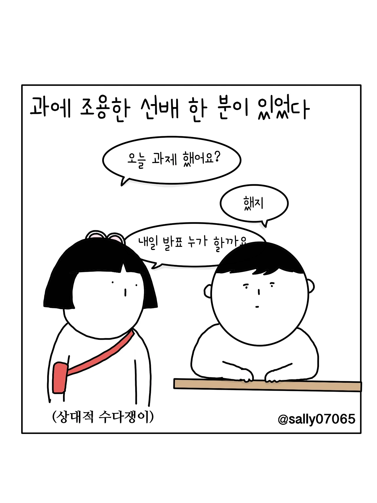 인스타계정sally07065에서 일상툰을 올리며, 블로그운영(밑 url 주소), 책 ‘내향적인 사람 중 가장 외향적인 사람’을 썼습니다
