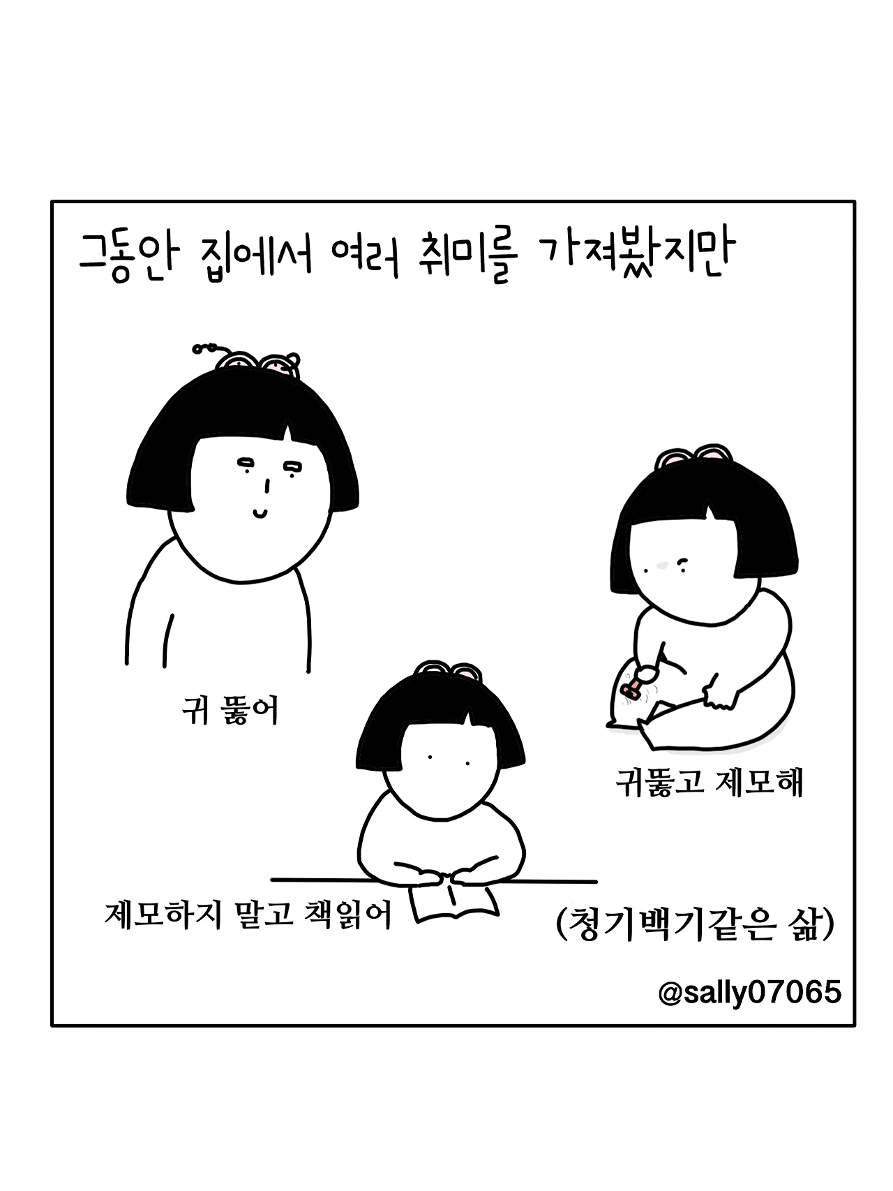 인스타계정sally07065에서 일상툰을 올리며, 블로그운영(밑 url 주소), 책 ‘내향적인 사람 중 가장 외향적인 사람’을 썼습니다
