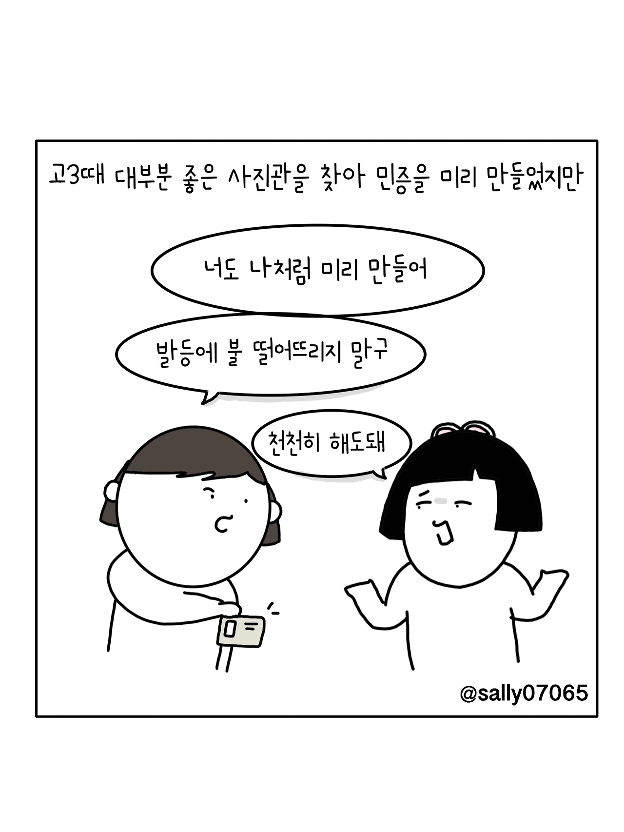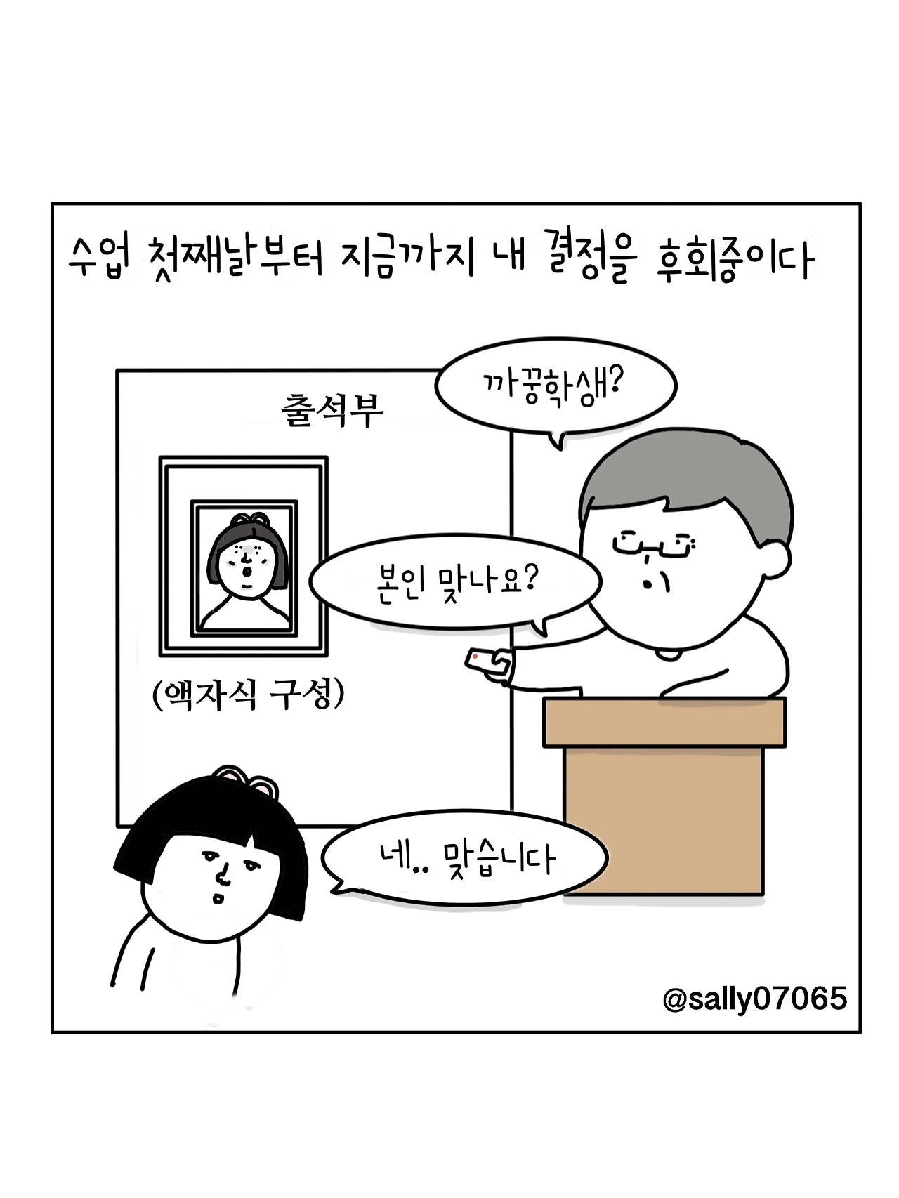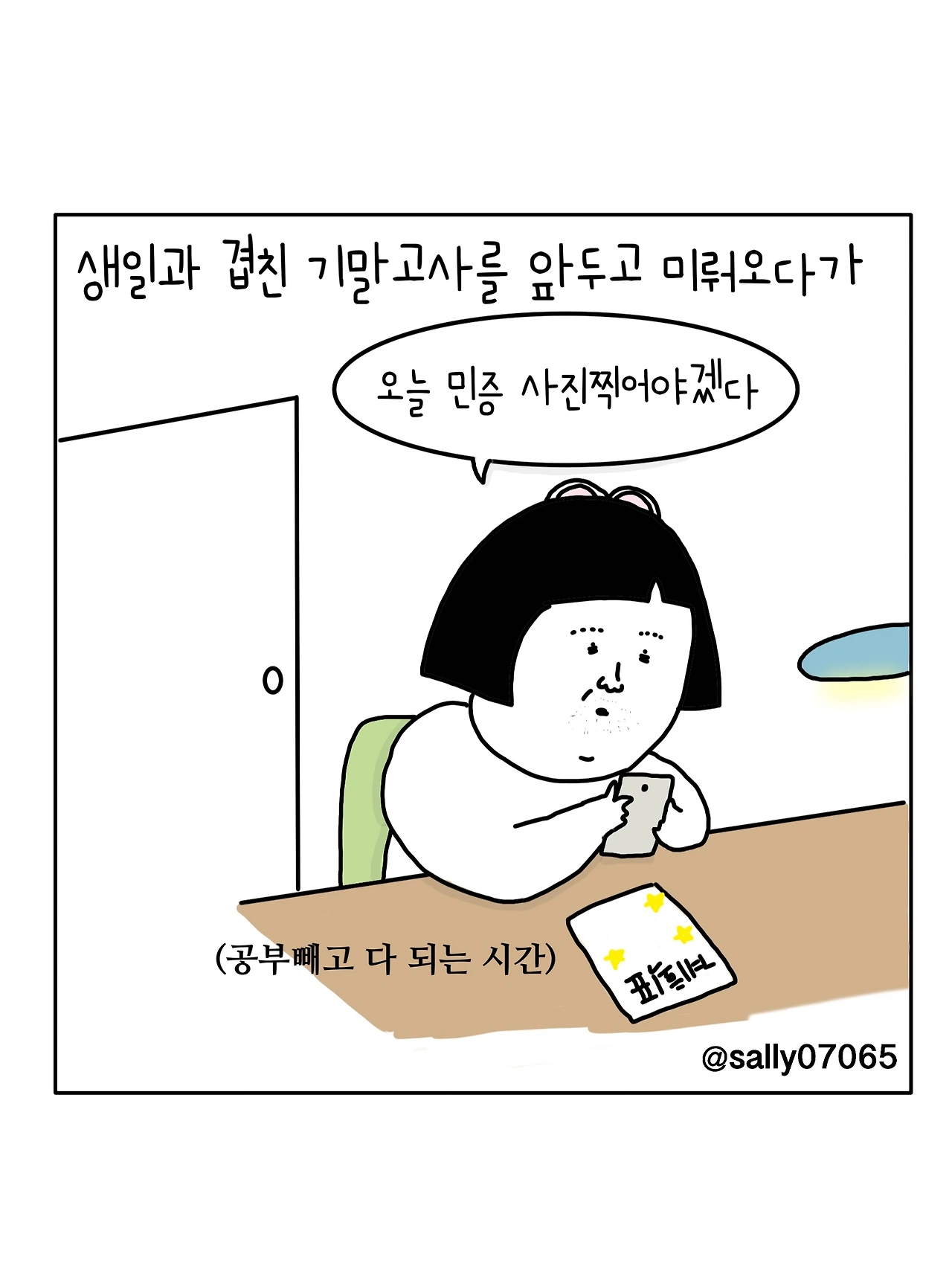 인스타계정sally07065에서 일상툰을 올리며, 블로그운영(밑 url 주소), 책 ‘내향적인 사람 중 가장 외향적인 사람’을 썼습니다