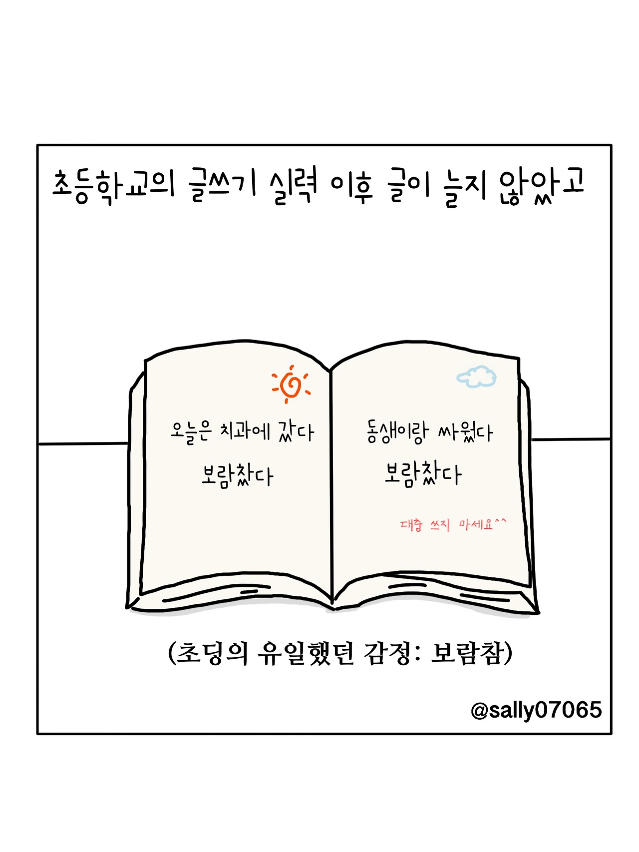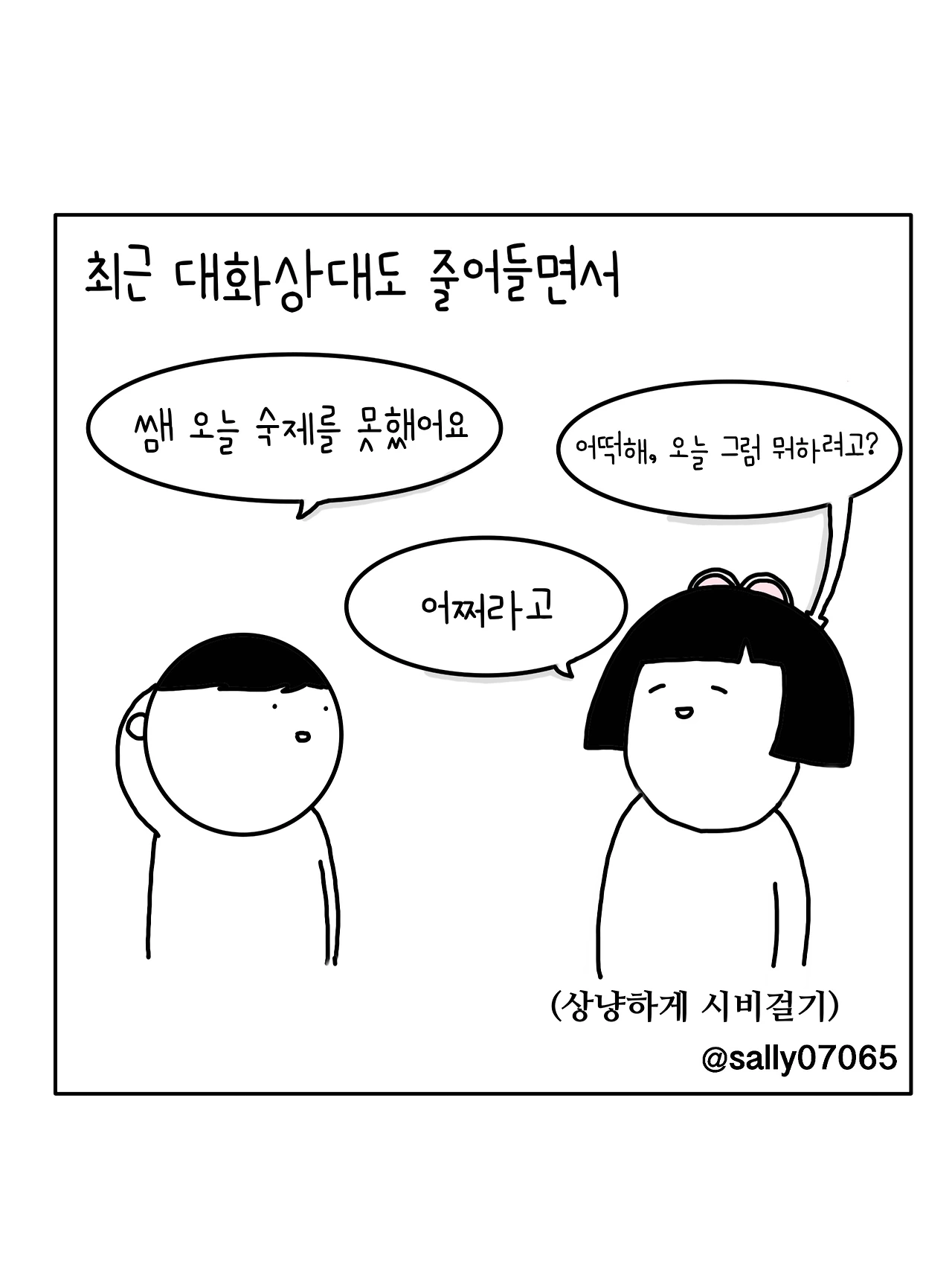 인스타계정sally07065에서 일상툰을 올리며, 블로그운영(밑 url 주소), 책 ‘내향적인 사람 중 가장 외향적인 사람’을 썼습니다