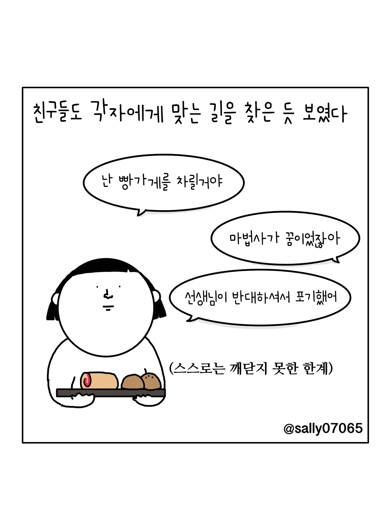 인스타계정sally07065에서 일상툰을 올리며, 블로그운영(밑 url 주소), 책 ‘내향적인 사람 중 가장 외향적인 사람’을 썼습니다