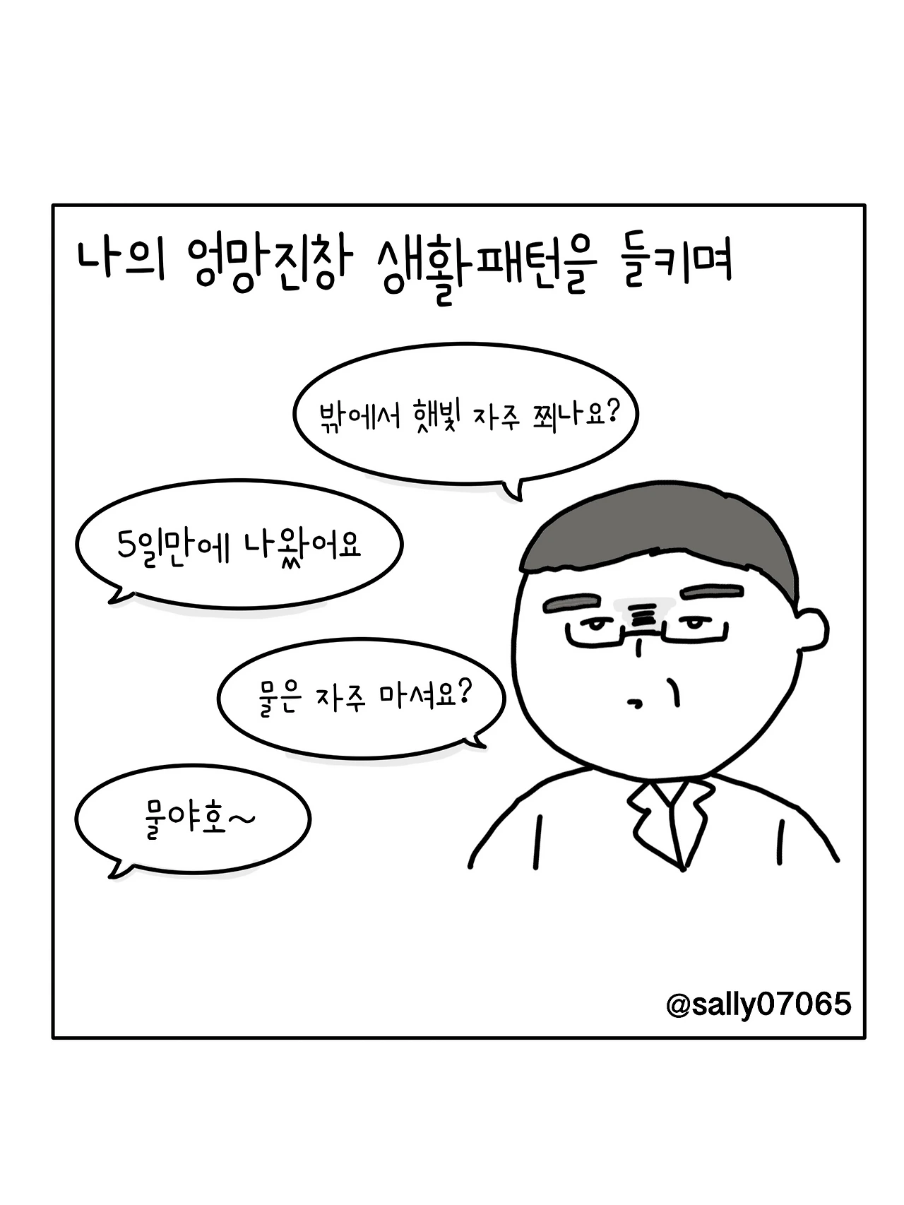 인스타계정sally07065에서 일상툰을 올리며, 블로그운영(밑 url 주소), 책 ‘내향적인 사람 중 가장 외향적인 사람’을 썼습니다