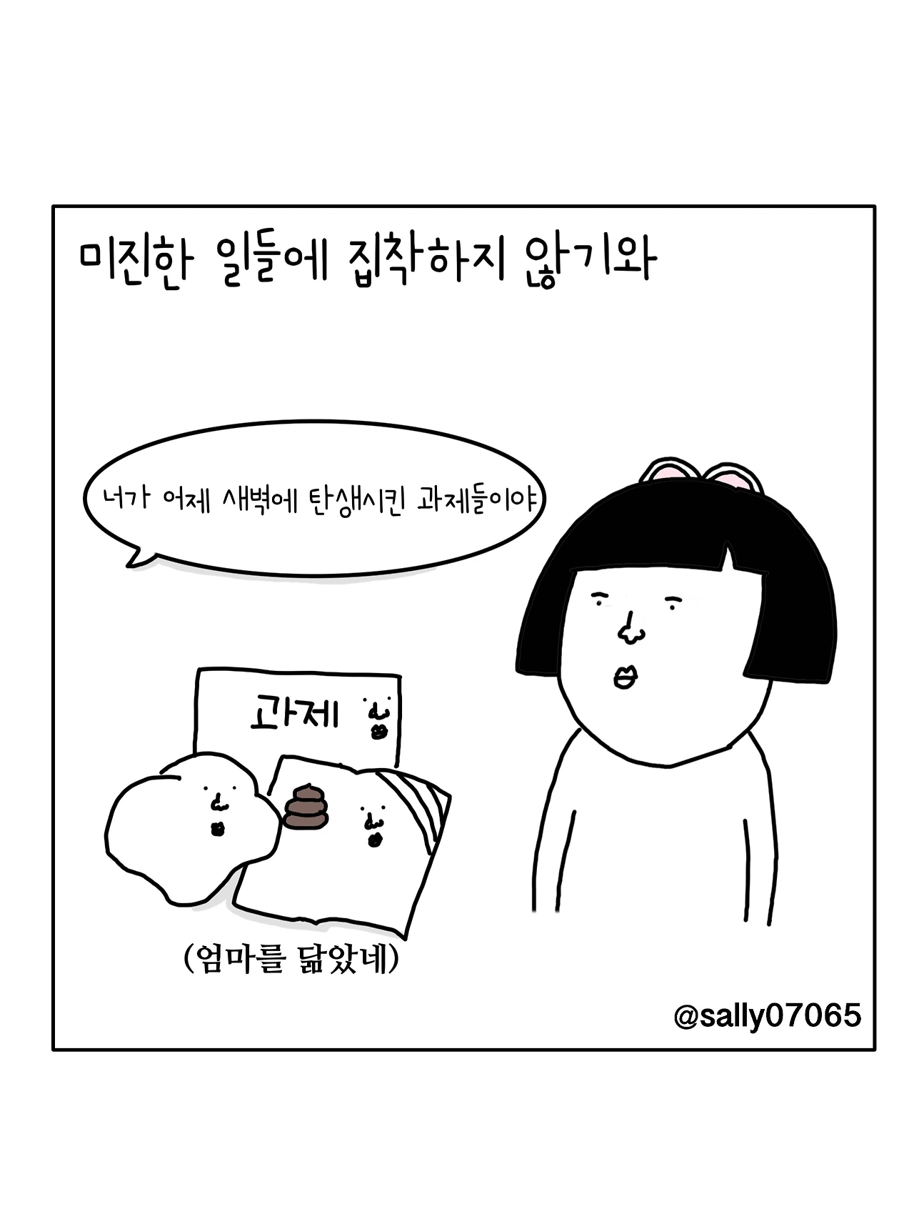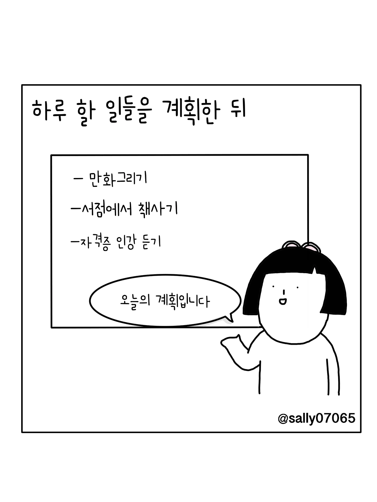 인스타계정sally07065에서 일상툰을 올리며, 블로그운영(밑 url 주소), 책 ‘내향적인 사람 중 가장 외향적인 사람’을 썼습니다