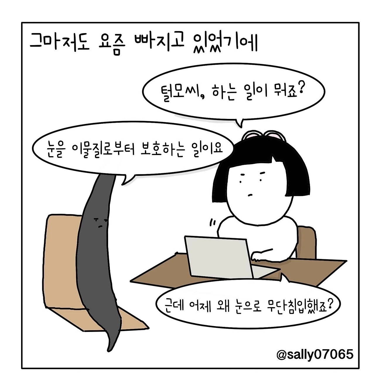 인스타계정sally07065에서 일상툰을 올리며, 블로그운영(밑 url 주소), 책 ‘내향적인 사람 중 가장 외향적인 사람’을 썼습니다