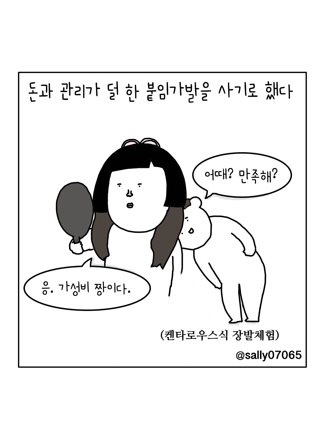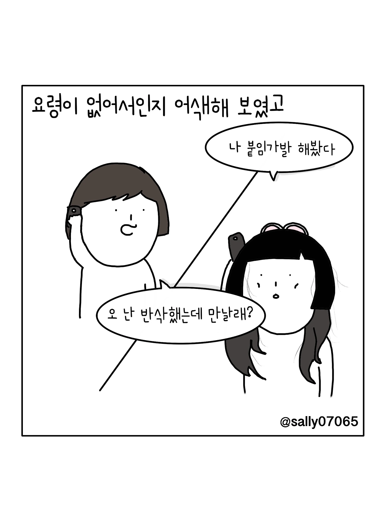 인스타계정sally07065에서 일상툰을 올리며, 블로그운영(밑 url 주소), 책 ‘내향적인 사람 중 가장 외향적인 사람’을 썼습니다