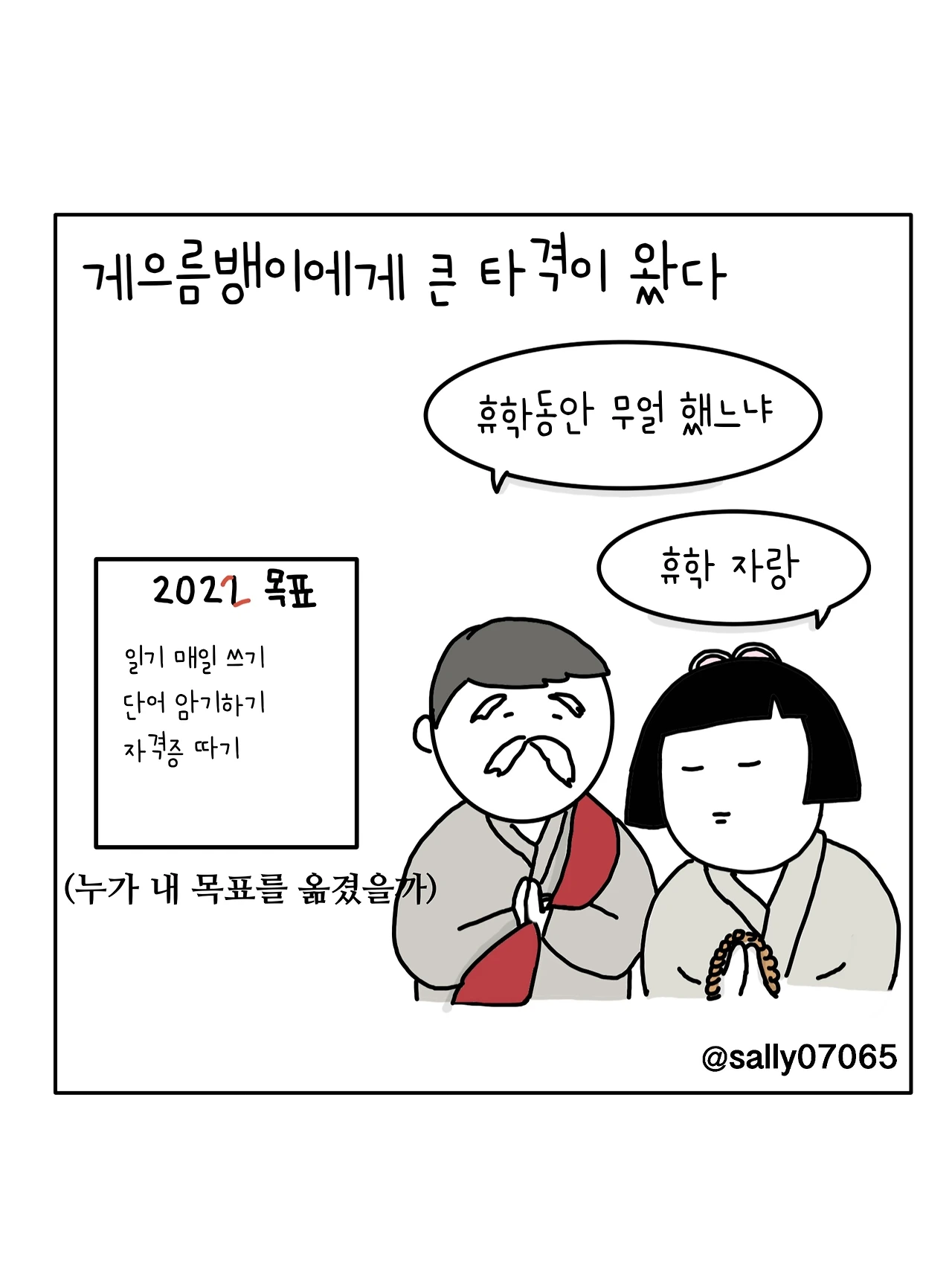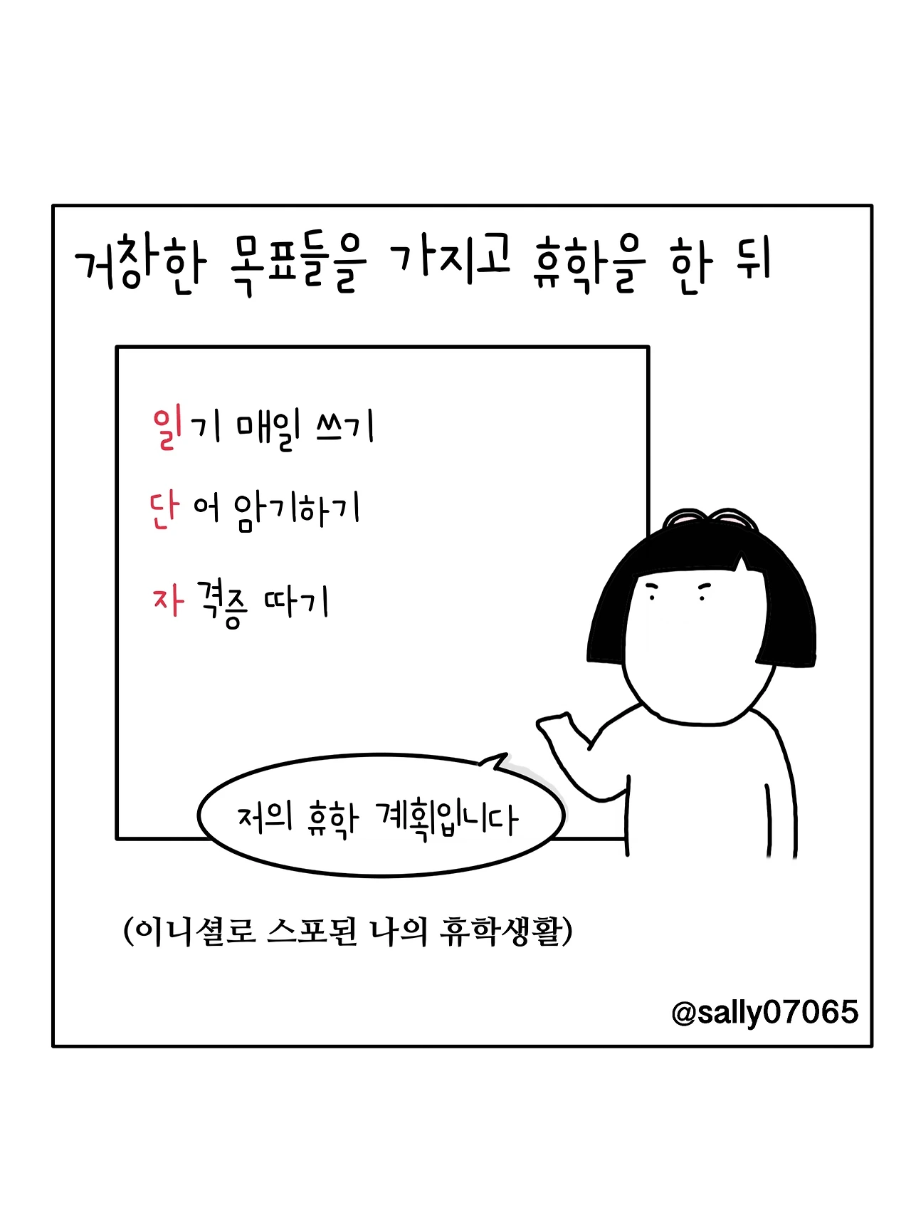 인스타계정sally07065에서 일상툰을 올리며, 블로그운영(밑 url 주소), 책 ‘내향적인 사람 중 가장 외향적인 사람’을 썼습니다