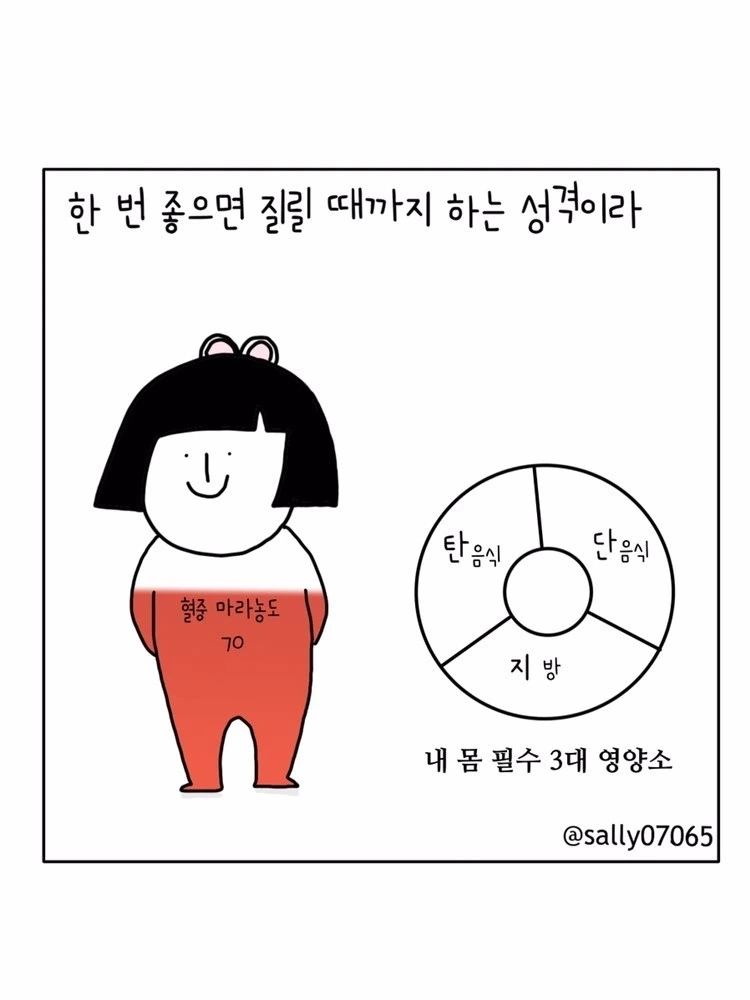 인스타계정sally07065에서 일상툰을 올리며, 블로그운영(밑 url 주소), 책 ‘내향적인 사람 중 가장 외향적인 사람’을 썼습니다
