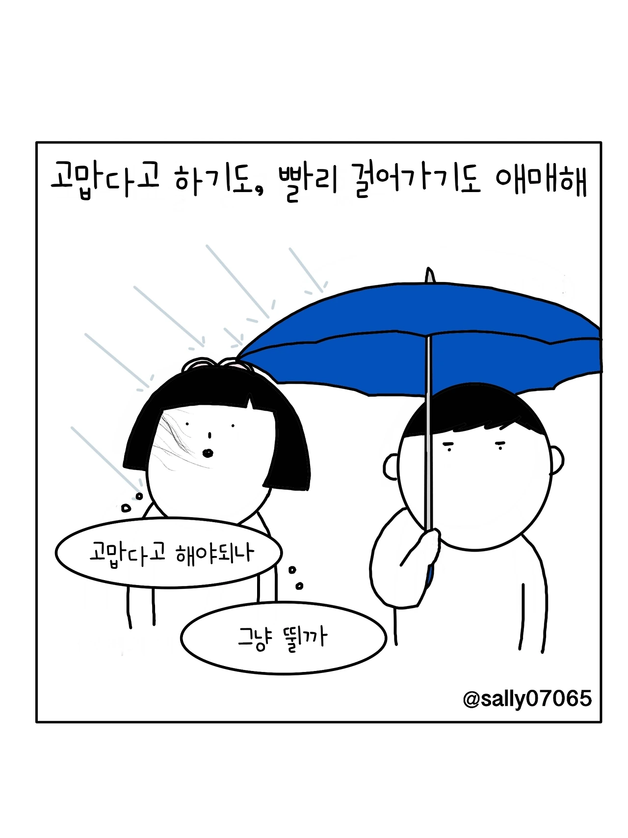 인스타계정sally07065에서 일상툰을 올리며, 블로그운영(밑 url 주소), 책 ‘내향적인 사람 중 가장 외향적인 사람’을 썼습니다