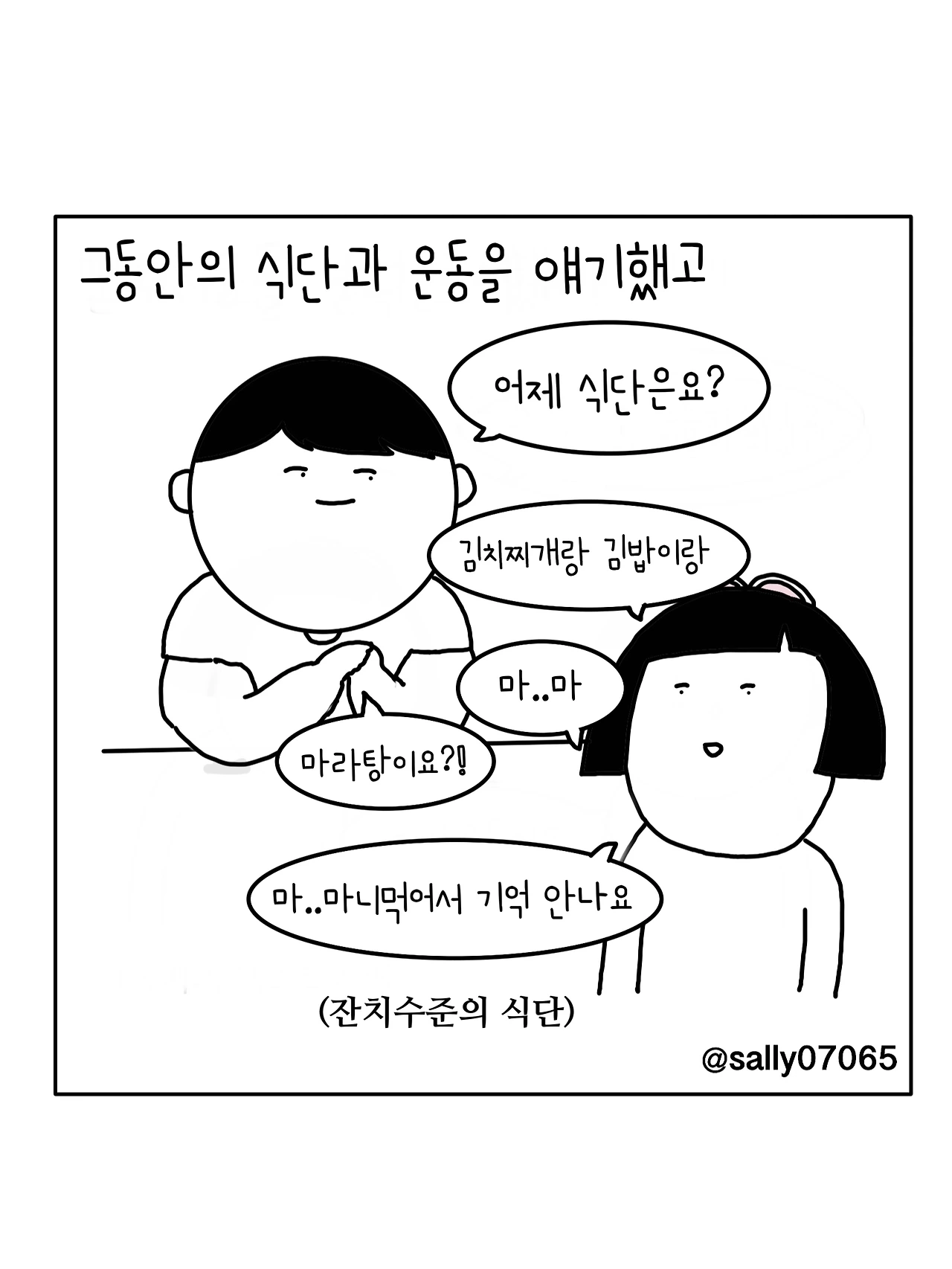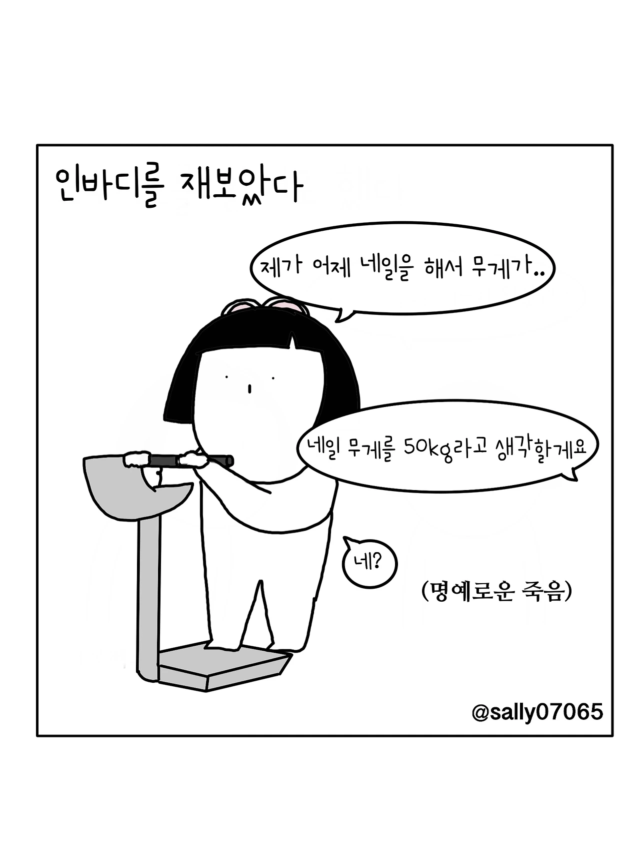 인스타계정sally07065에서 일상툰을 올리며, 블로그운영(밑 url 주소), 책 ‘내향적인 사람 중 가장 외향적인 사람’을 썼습니다
