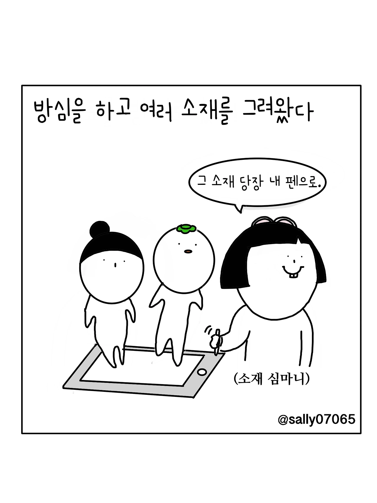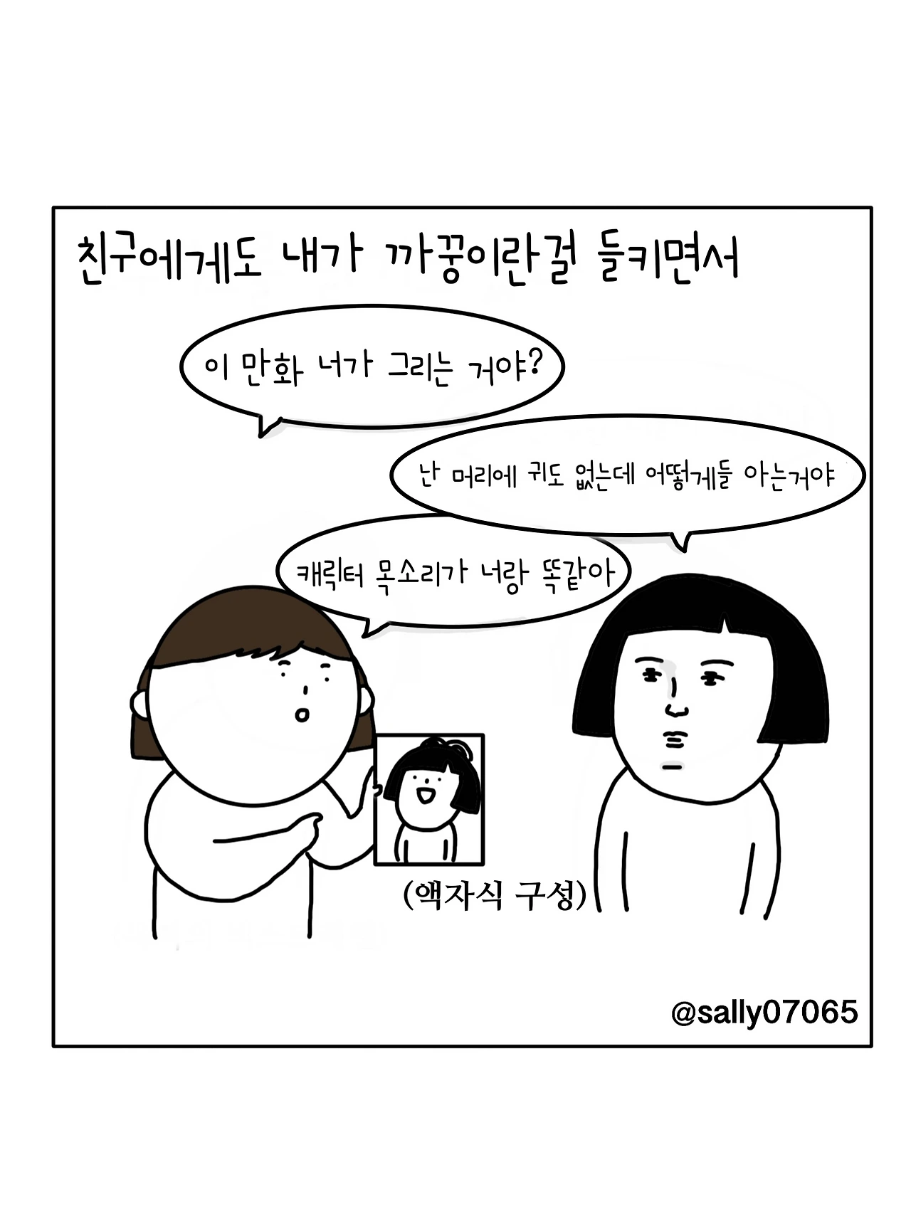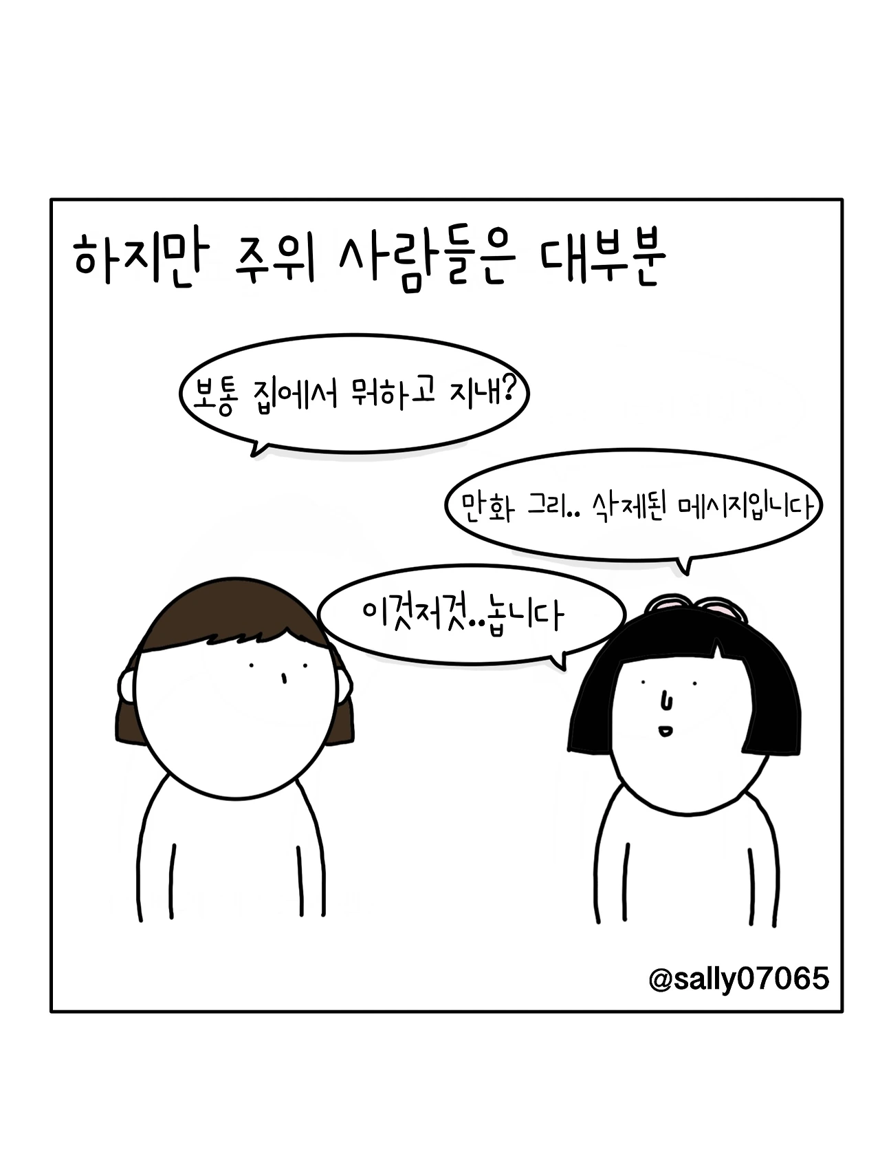 인스타계정sally07065에서 일상툰을 올리며, 블로그운영(밑 url 주소), 책 ‘내향적인 사람 중 가장 외향적인 사람’을 썼습니다
