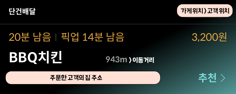 그러니까 내가 해야 할 일은 가게에 도착해서 앱으로 <가게 도착> 버튼을 누르고, 음식을 챙긴 후 <픽업 완료>를 누른 다음에 목적지까지 또다시 뚜벅뚜벅 걸어가면 되는 것이었다.