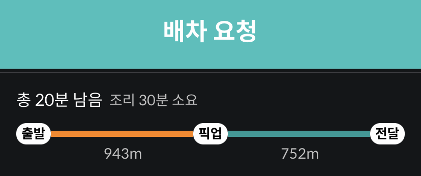 쫄보인 나는 누르면 바로 배달을 가야 하는줄 알았다. 그래서 팝업을 누르지 않고 주소를 지도 앱에 쳐보며 거리를 가늠했다. 하지만 상세 확인을 한 뒤 배차 요청 버튼을 눌러야 배달이 시작되니 안심하고 눌러보아도 괜찮다.