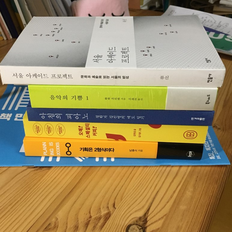 이 책들은 삼촌이 회사 포인트로 내게 사주신 책 다섯 권. 책 사주신다는 얘기가 그렇게나 좋아서 무슨 소중한 보물 고르듯 심사숙고해서 책을 골랐다. 정말 웃긴 건 지금까지 저기서 읽은 책은 <오예! 스페셜티 커피!> 단 한 권이다. 집에 있는 책은 안 읽고 맨날 도서관에서 주구장창 빌려오는 게 참 웃기긴 하다.