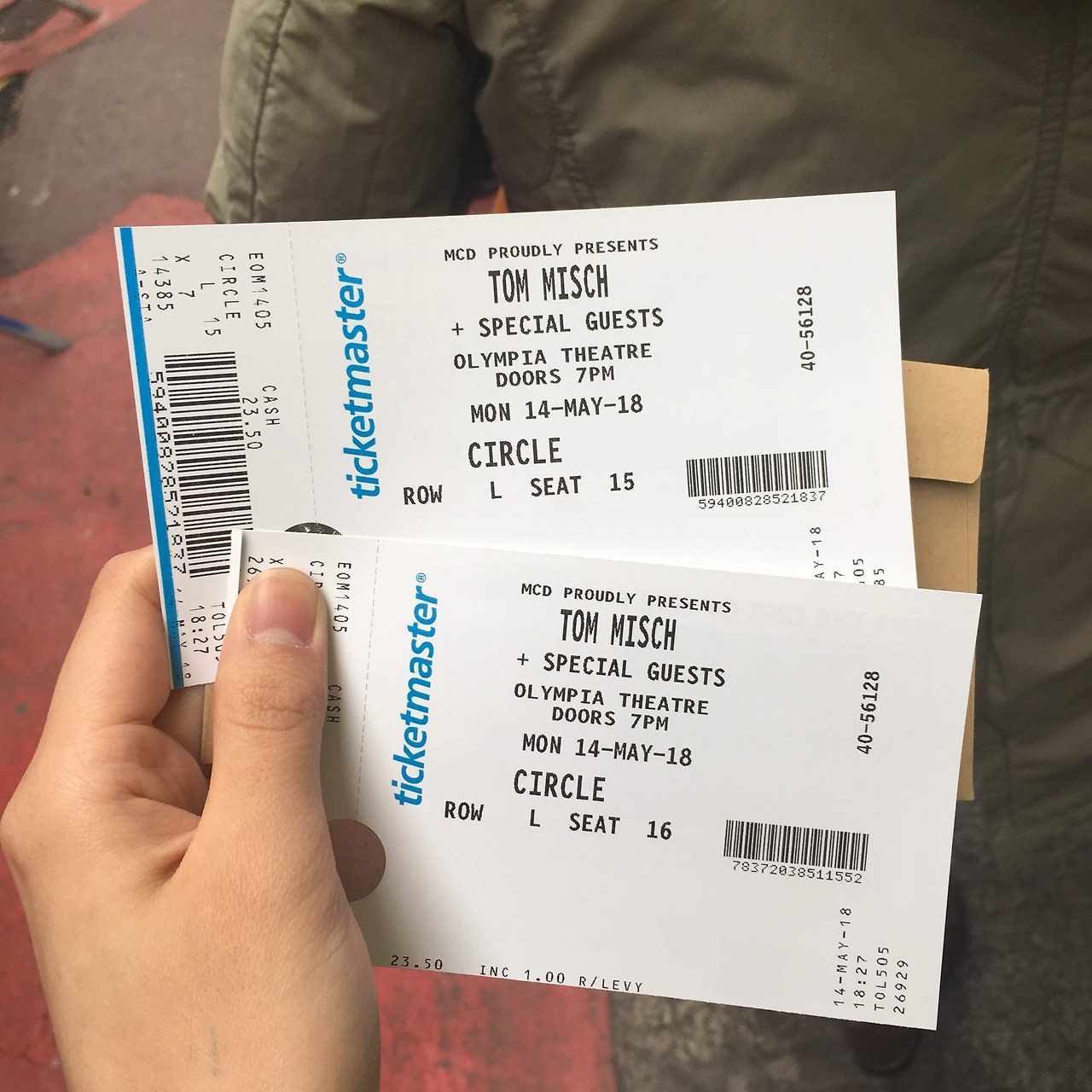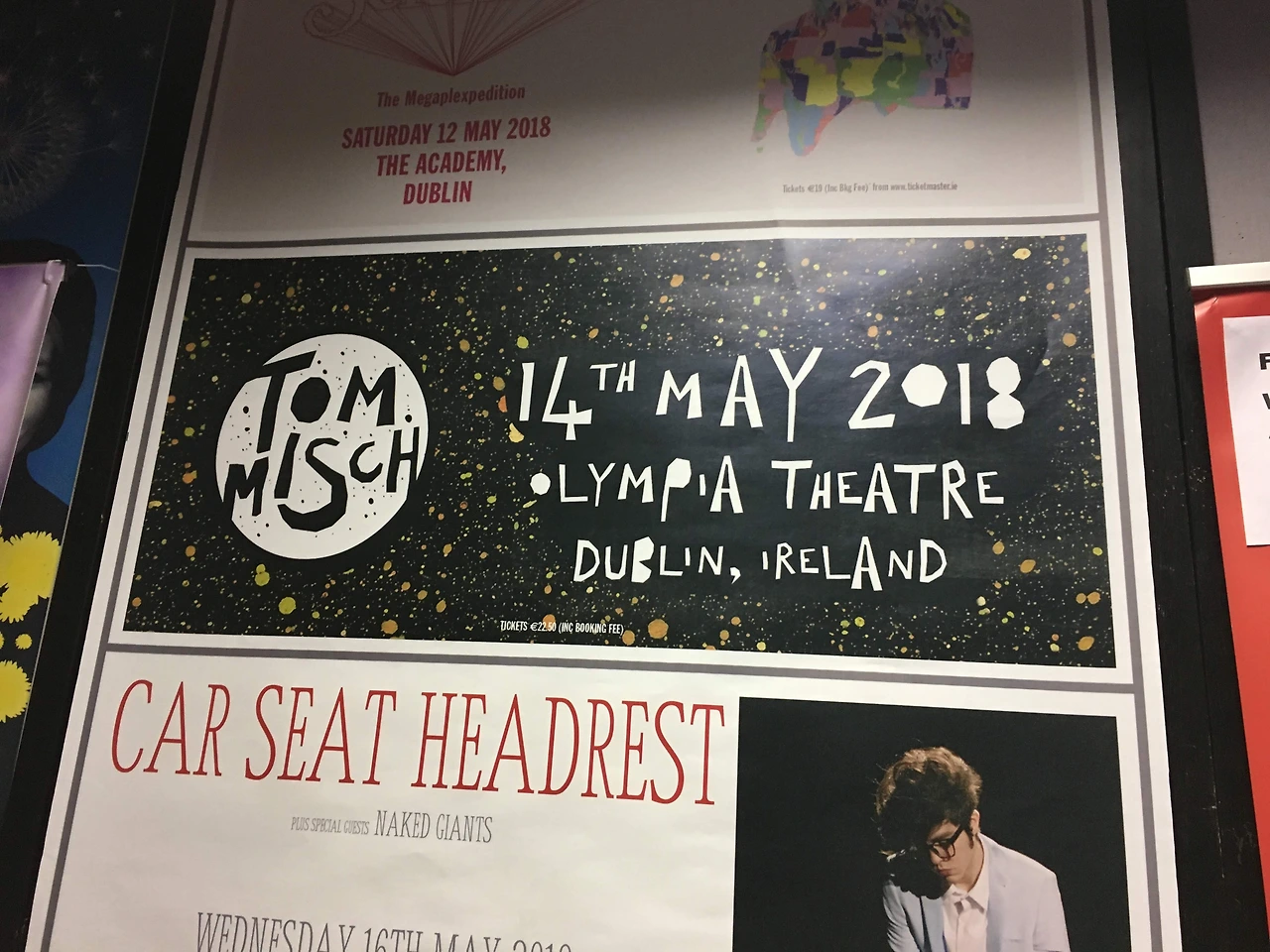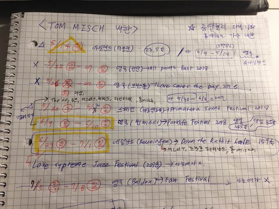 가게 앞에 서있는 그에게 주뼛주뼛 다가가 말을 걸었다. "Excuse me, are you really Tom misch?" 물어보니 자기가 맞단다. 말도 안 돼. 실제로 만난 그는 더 멋졌다. 언니와 나는 입을 다물지 못하고 말을 하기 시작했다. 우리는 독일로 교환학생 온 한국 학생인데, 너 공연 보려고 더블린까지 날아왔다고. 너의 노래 정말 좋아하고, 오늘 공연 너무 기대하고 있다고. 그는 너무 고맙다고 말했고, 함께 사진을 찍어도 괜찮냐는 부탁에 흔쾌히 응해주었다. 공연이 끝나고 혹시 사인을 받을 수 있을지 묻자 그는 "물론이지! 공연 끝나고 무대 뒤 쪽으로 오면 내가 해줄 수 있을 거야."라고 답했다. 마지막으로 우리는 그의 노래 가사 'You should come south of the river'처럼, You should come to South of Korea!라고 말했다. (그리고 톰은 정말 그 해 여름, 한국에 처음 방문하여 내한 공연을 했다.)
