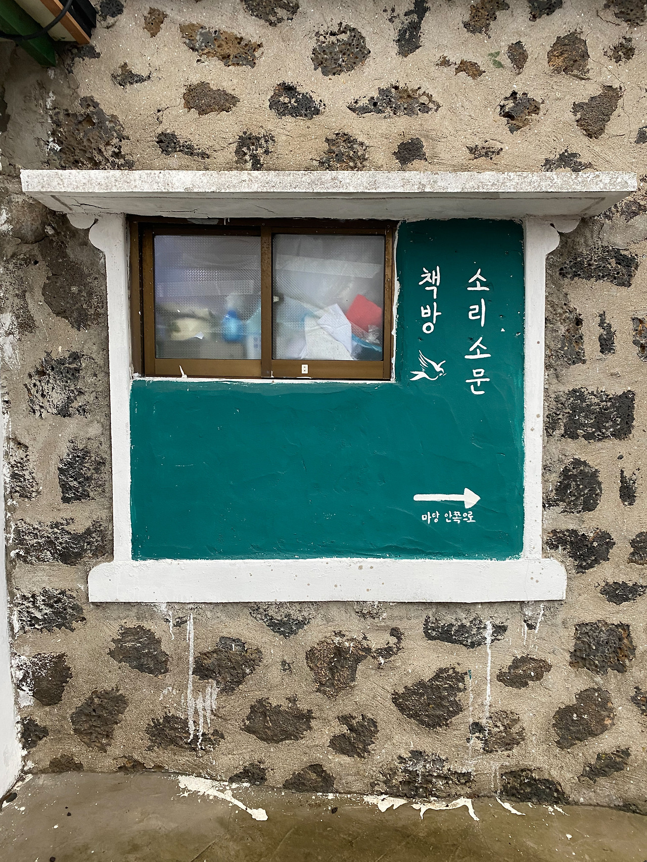 오후 무렵엔 꼭 가고 싶었던 책방 '소리 소문'도 들렀다. 검은 돌이 구석구석 보이는 점박이 외관이 괜히 귀엽다.