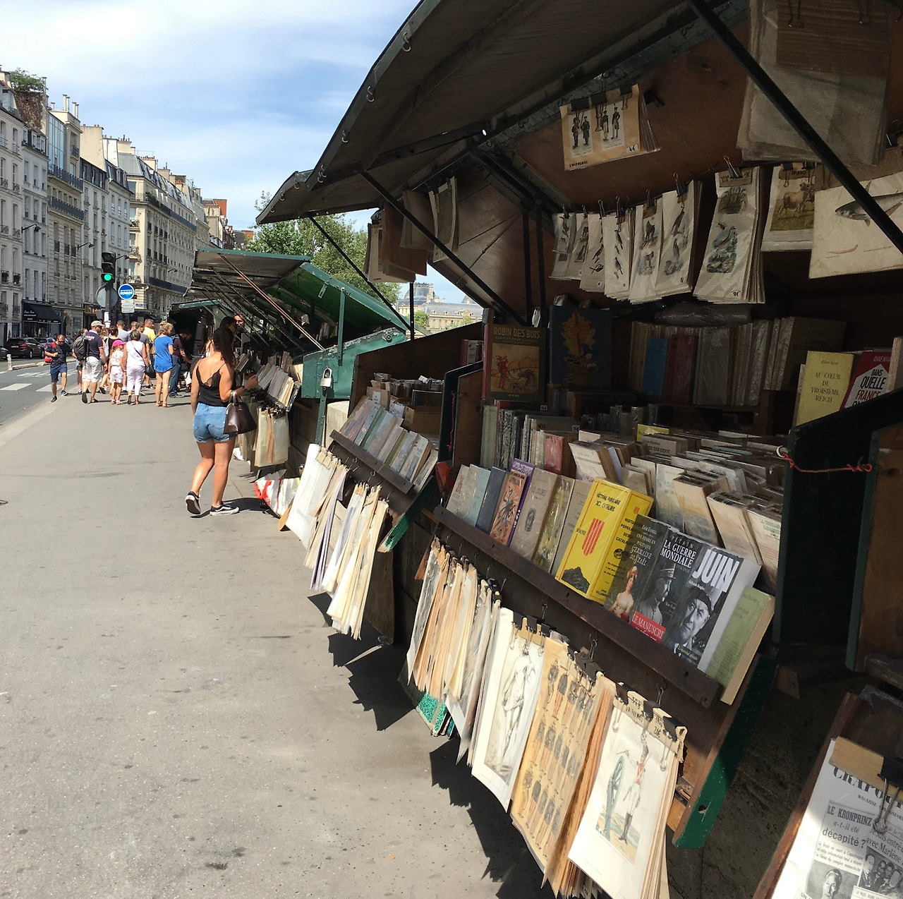 센 강변 근처 오래된 서적과 그림 등을 판매하는 가판대.