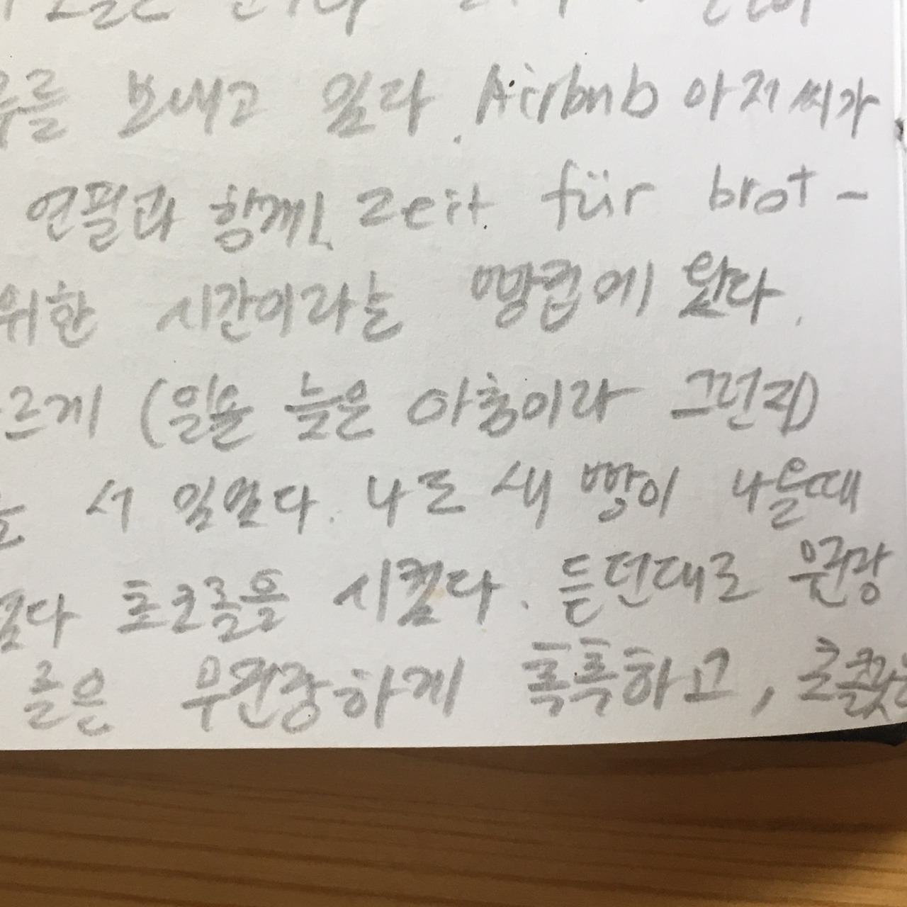 지금은, 아니 오늘은 언니와 각자 돌아다니다 저녁에 만나기로 했다. 혼자서 보내는 낯선 하루, 베를린의 세 번째 날이다. 에어비앤비 주인아저씨가 내게 빌려준 초록색 연필과 검정 노트를 들고 <Zeit für Brot>, '빵을 위한 시간'이라는 이름의 빵집에 왔다.