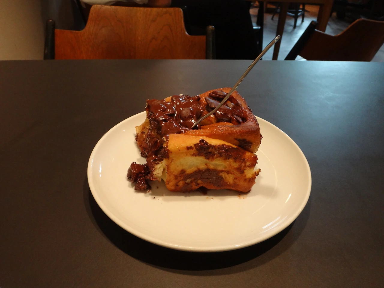 예상과는 다르게 - 늦은 일요일 아침이라 그런지 - 사람들이 줄을 서 있었다. 인기많은 롤빵은 내 앞에서 금세 동나서 갓 구운 롤빵이 나올 때까지 기다렸다가 초코롤을 주문했다. 듣던 대로 무지하게 단 맛이다. 빵은 엄청나게 촉촉했고, 초콜릿은 초파리들이 꼬일만큼이나 달다. 방금 한 초파리는 초콜릿이 잔뜩 묻은 접시 끄트머리에 앉아있다 이내 죽어버렸다. 뭐든, 너무도 달콤한 건 독이 되는 법인가 봐. 초코보단 시나몬 롤이 왠지 적당히 달게 맛있을 것 같다.