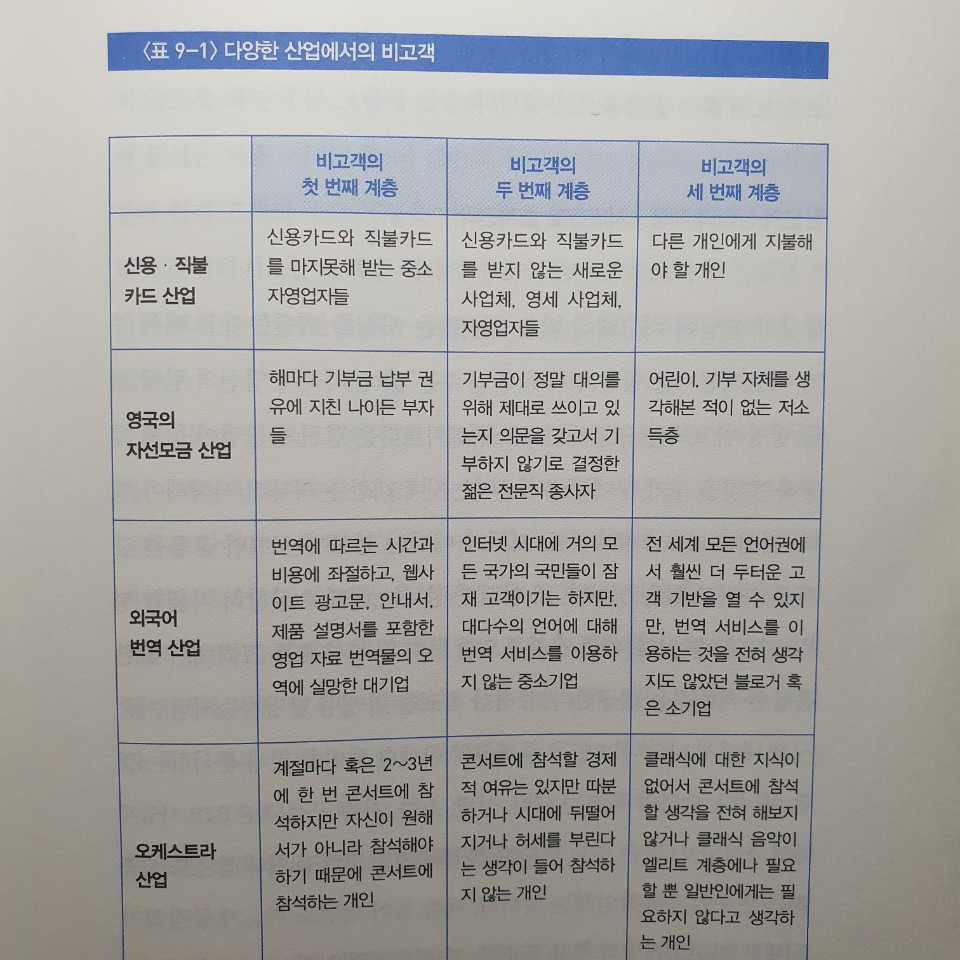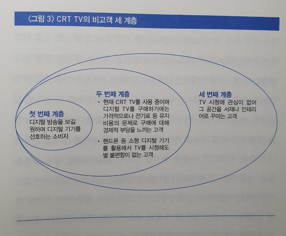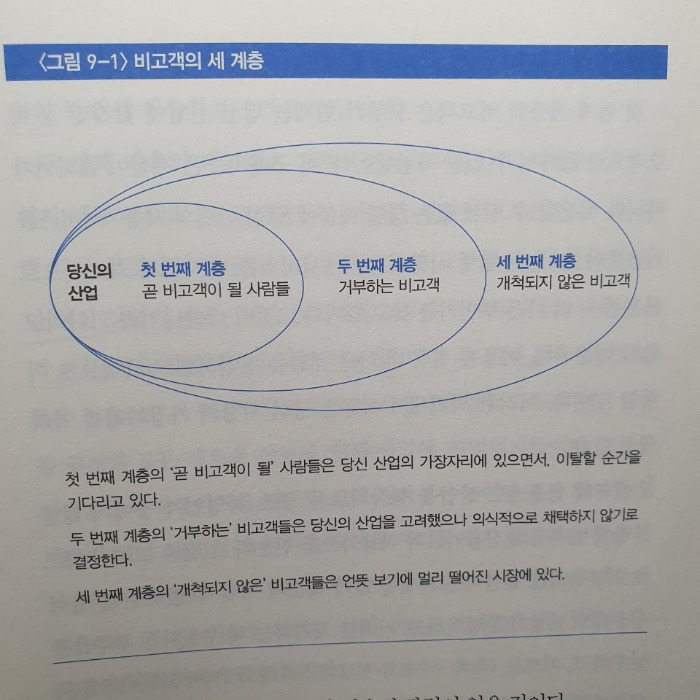 ② 두 번째 계층 : 거부하는 비고객, 현재 자사의 산업의 제품/서비스를 고려했지만 거부한 사람들, 다른 산업에서 제공하는 것들이 그들의 요구를 더 충족 or 현재 자사의 산업의 제품/서비스가 그들이 구매하기에는 너무 비싸기 때문, 잠재적 고객 가능성 보유