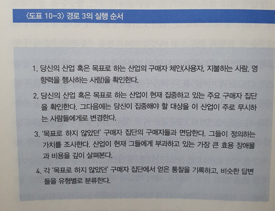 - 산업의 기존 구매자 집단(타겟)에 더 나은 것을 제공하는 것이 아니라 구매자 체인 전체를 살펴보고 산업의 구매자 집단을 재정의해야 한다.