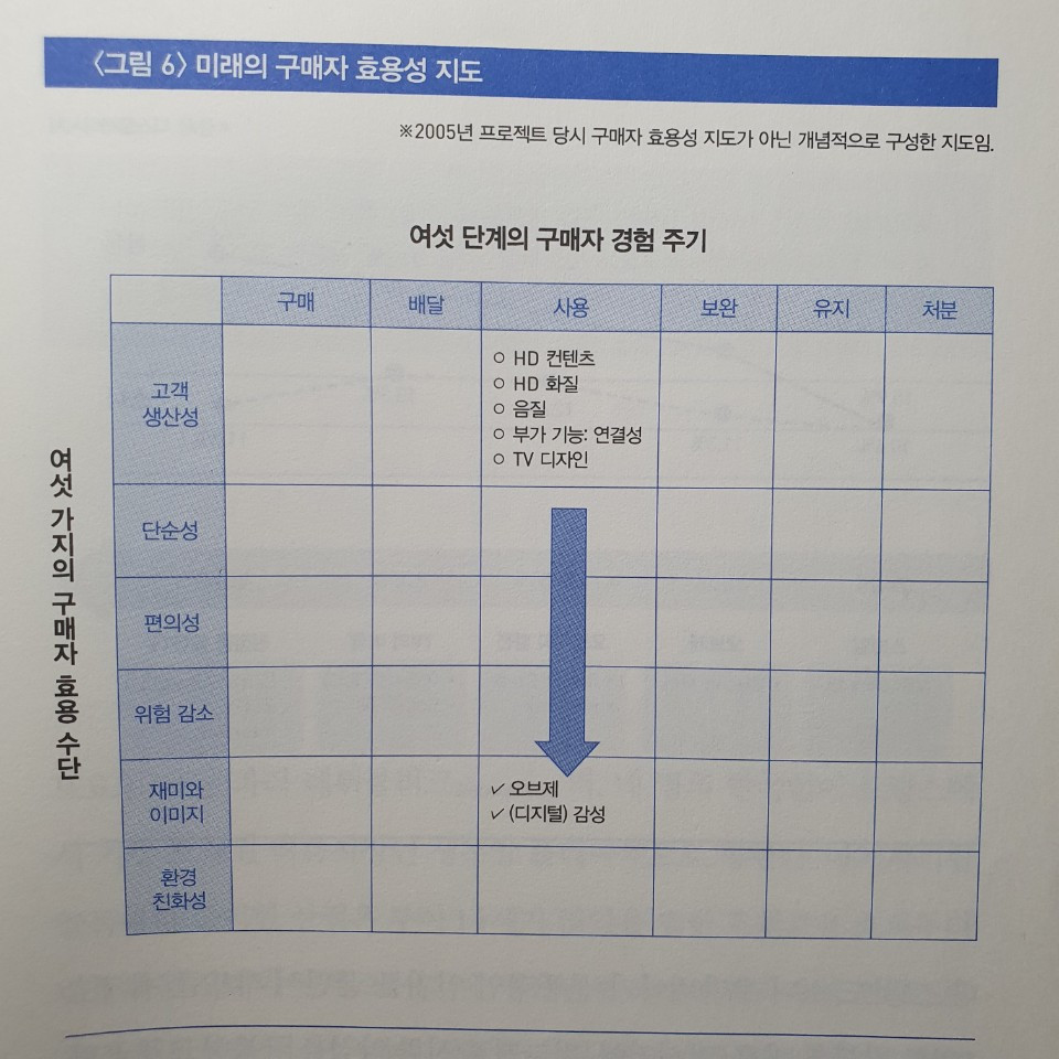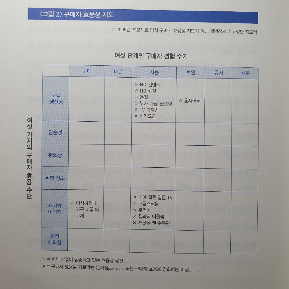 - 구매자 효용성 지도의 가로 축은 구매자 경험주기, 세로 축은 구매자 효용수단으로 이루어진다.