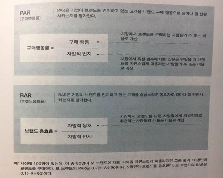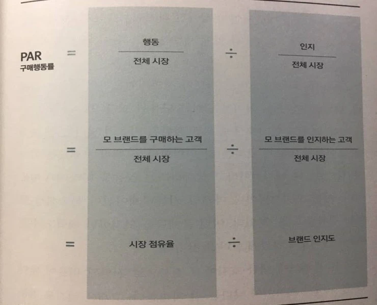 - PAR은 시장 점유율을 시장 인지도로 나눠서 산출할 수 있다.
