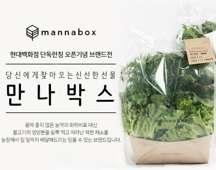 만나박스는 농장에서 재배된 채소를 소비자에게 정기적으로 배달해주는 서비스 브랜드이다. 요즘 많이들 이용하고 있는 정기구독 서비스를 차용했다.