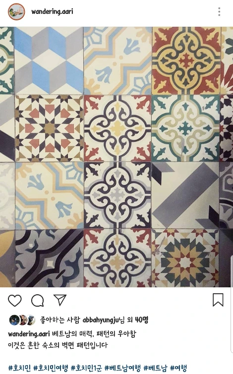 아련 조금 색다른 기념품을 사고 싶어서 타일을 꼭 사고 싶었고, 끈질긴 검색 끝에 우리가 원하는 스타일의 타일 가게***를 찾아내서 사러 간 것도 좋았어요. 이번 여행에서 우리는 주로 1군에서 도보로 이동 가능한 곳들을 많이 다녔기 때문에 다시 호치민을 간다면 1군 말고 다양한 동네를 구경해 보고 싶어요.
