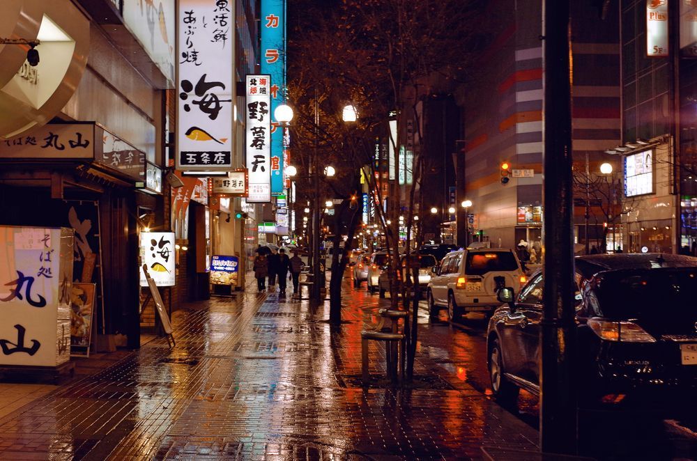 성훈 네. 한 두 가지 장면도 아니고 굉장히 많아요, 기억에 남는 공간이나 장소의 이미지가. 지금 당장 떠오르는 건 불이 다 꺼지고 나서 사람들이 아무도 없는 스스키노 거리의 분위기. 다누키코지나 스스키노 중심가 아케이드의 가로등 불빛들이 따뜻한 색감이예요. 거기에 가끔씩 지나다니는 택시 불빛까지 더해지고, 엄청나게 고요한데 일정한 간격으로 신호등 건너는 새소리가 울리는 거죠.