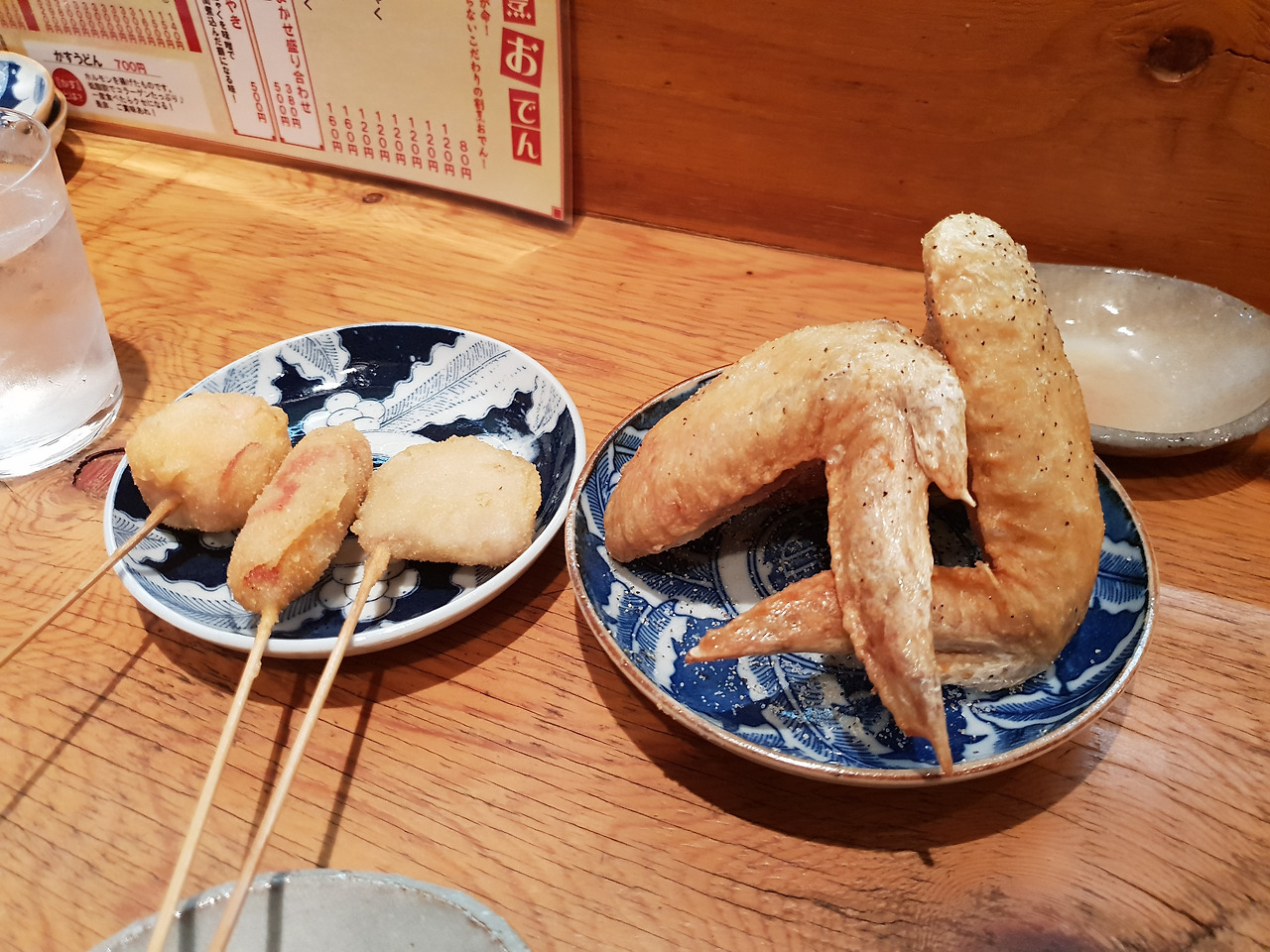 * 원 상호명은 噂のこの串かつあのおでん 広島銀山町倶楽部 인데 구글맵에 '쿠시카츠 오키타'라고 한국어로 검색하여도 뜬다. 5점 만점에 4.2점의 평점을 기록하고 있고 한국인 리뷰는 하나만 남겨져 있는 곳. 운영 시간과 자세한 위치는 https://goo.gl/maps/BFxHE53CgkP2 링크 참고. 꼬치 메뉴는 한 종류에 1000원부터 2000원대까지 다양하다. 주인아저씨가 아주 약간의 영어과 아주 약간의 한국어를 구사할 수 있고, 무궁무진한 바디랭귀지와 센스로 의사소통을 이어가신다. 이곳에 손님으로 왔던 분이 마음에 들어 데이트를 신청하여 결혼에 골인하였다고. 현재는 두 분이서 같이 가게를 꾸려나가고 있다. 주인장이 가게의 분위기를 만들어 나가는 사람이라면 이곳에 오는 다른 손님들은 그 분위기를 채워나가는 느낌이다.