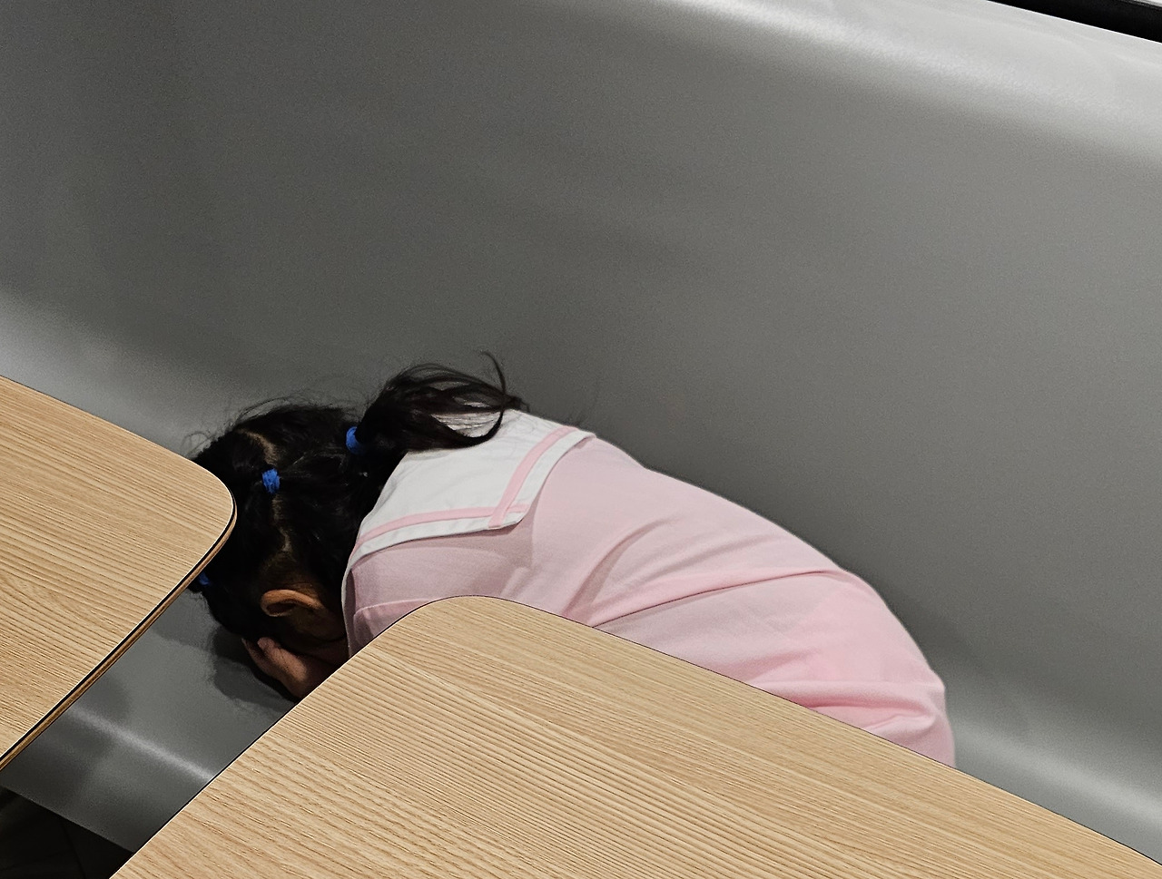 학교 근처 맥도날드에서 오렌지주스를 샀는데 아이는 이렇게 잠이 들었다. 아이들이 여럿 이렇게 쪽잠을 자는 것을 보니 씁쓸했다.