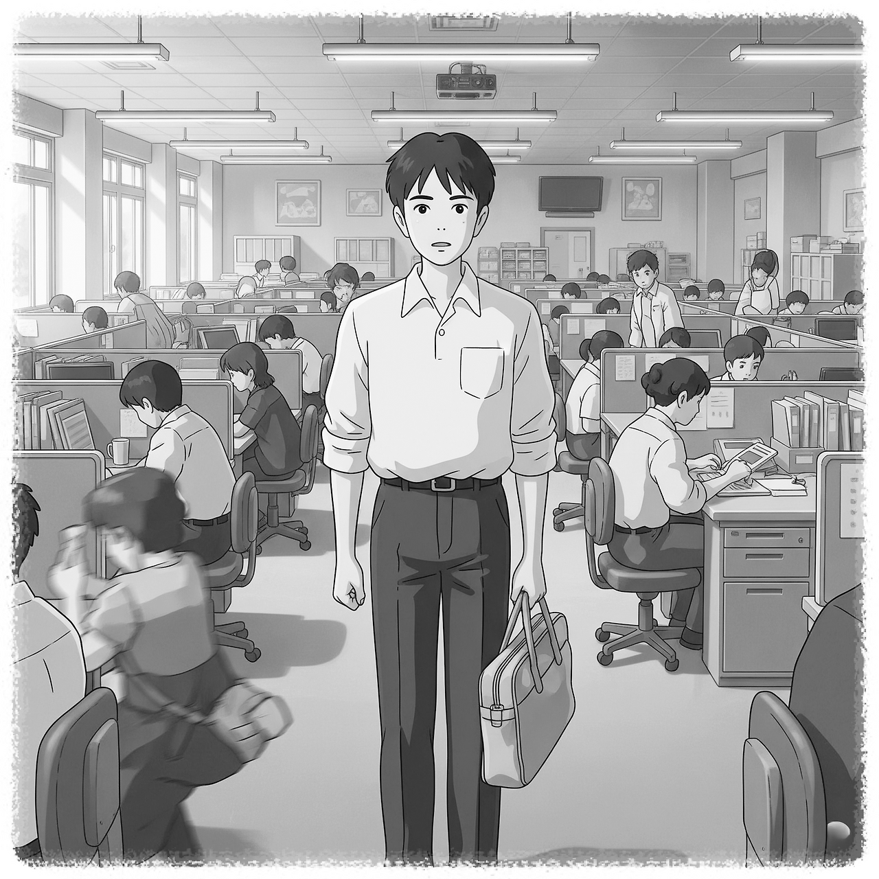 유쾌한 미소를 띤 한 선배였다. 그를 따라 어색하게 사람들에게 고개를 숙이며 복도를 지나자, 창가 쪽 가장 끝자리에 손때 묻은 낡은 책상 하나가 보였다. 하지만 이상하게 서운하지 않았다. 오히려 ‘드디어’라는 안도감에 마음이 놓였다.