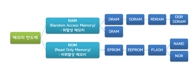 메모리 반도체는 크게 RAM과 ROM으로 구분됩니다.