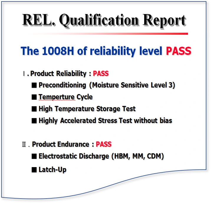 신뢰성 테스트 : 반도체 칩의 신뢰성, 내구성을 테스트하는 것으로 수명시험, ESD-Latch-up Test 등이 있다