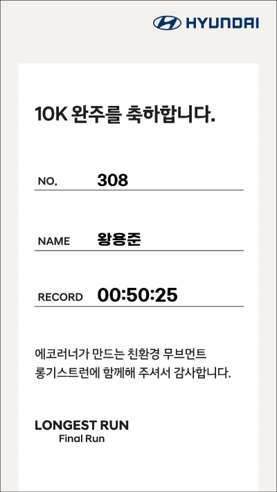 현대자동차가 후원하는 ‘롱기스트 런(Longest Run)’.