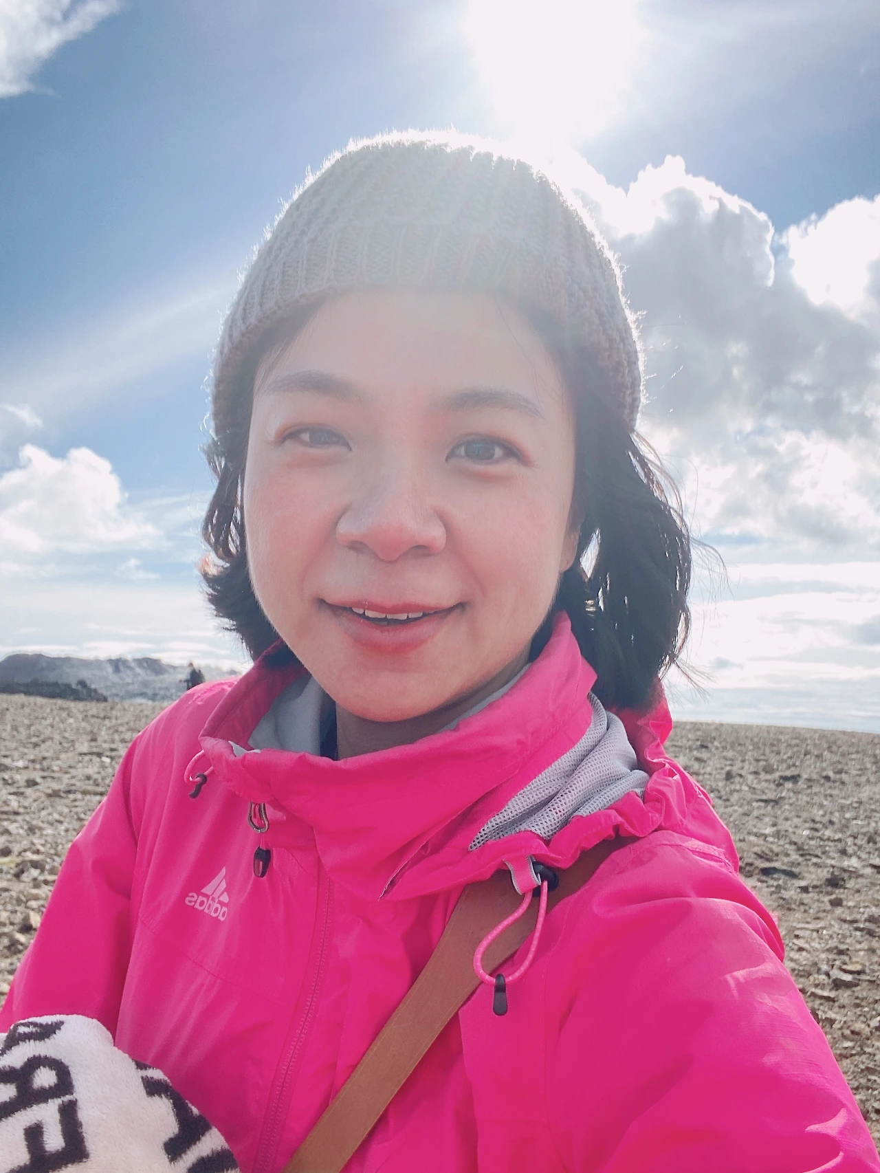 깊게 심호흡 한 번 하고 다시 차를 돌려 가다 보니 넓은 벌판에 차들이 많이 보인다. 이번엔 제대로 찾아온 거 같다. 어떻게 다들 알고 이렇게 찾아오는지 신기하다. 비는 그쳤지만, 날은 여전히 차갑다. 주차를 하고 약속한 가이드 미팅 장소(나무 표지판 앞)로 가는데 바위틈에 회색 뜨개 모자가 떨어져 있다. 일반적인 상황이라면 그냥 지나쳤을 텐데 추운 날씨에 나의 본능이 움직여 모자를 주웠다. 주변을 둘러보았지만 아무도 없다. 내 머리에 써보니 좀 작은 듯하면서도 너무 따뜻하다. 아자뵹! 주운 사람 임자라고 그냥 내가 쓰기로 한다. 아이들은 안 된다고 했지만, 누군가 모자를 보고 자신의 것이라고 하면 돌려주겠다고 약속했다. (이날 운 좋게 주운 이 뜨개 모자는 결국 나의 아이슬란드 기념품이 되었다.)
