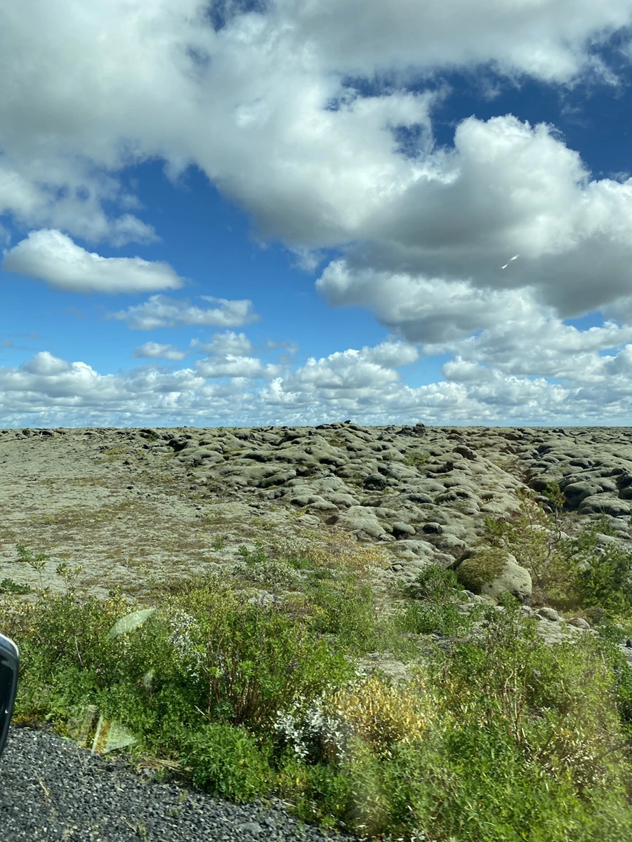 조금 더 달리니 호수가 보인다. 물이 보이니 곧 언제 그랬냐는 듯 은은한 색채의 들꽃들이 만발한 예쁜 들판이 나타났다. 신비롭다. 아마 이 지형은 오랜 세월에 걸쳐 현무암이 이끼에 의해 흙이 되었고 그 흙에서 양분을 먹은 식물이 자라나서 생긴 듯하다. 하지만 모두 혹독한 겨울을 견뎌야 하므로 키가 크지 못한 낮은 들꽃으로 살아가고 있는 듯 보였다. 사진과 영상에 다 담기지 않은 미지 세계의 모습들.