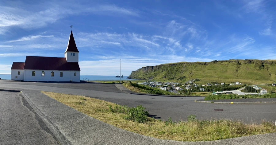 아이슬란드 최남단 마을 비크이뮈르달의 언덕에 올라가면 빨간 지붕의 루터교회가 있고 교회 뒤로 바다가 한눈에 들어오는 근사한 풍광을 만날 수 있다. 언덕에서 산으로 이어지는 초원에는 산양과 말들이 뛰어노는데 그렇게 평화로울 수 없고 힐링 그 자체다.