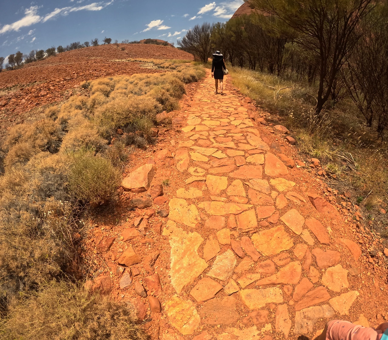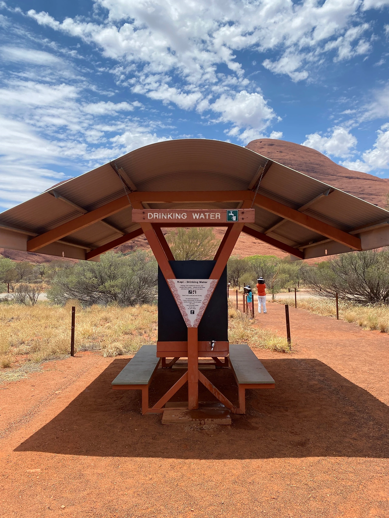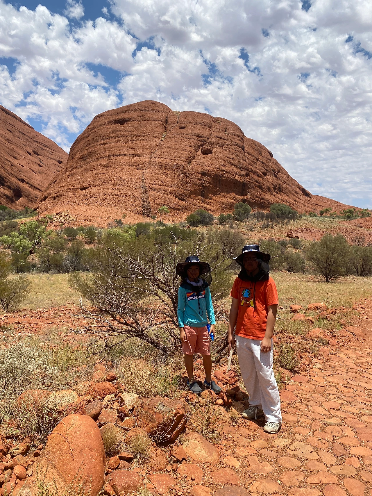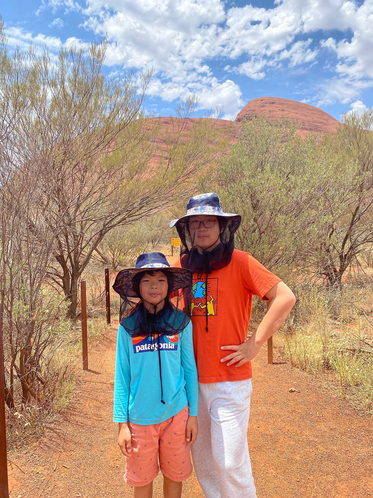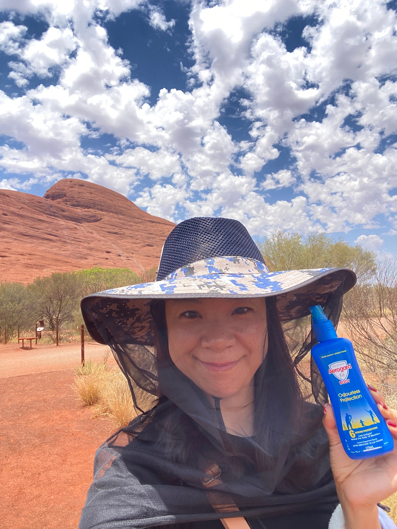 호주는 우리나라와 정반대의 계절을 가지고 있다. 우리나라 여름인 6~8월은 호주의 겨울에 해당하지만, 선선한 기후로 여행하기에 적합하다. 이 때문에 울룰루의 사막여행도 성수기에 속한다. 그에 반해 우리나라 겨울에 해당하는 12~2월은 호주의 여름으로 내륙인 울룰루는 현실적으로 여행하기에 너무 덥다고 한다. 우리는 11월 중순에 여행하는 거라 '초여름'에 해당하는데 여행 정보에 따르면 초여름 날이 더워지면서부터 피를 빨아 먹는 파리와 날벌레가 극성이므로 일명' 망사 모자', '벌집 모자'를 꼭 챙겨야 한다고 했다. 발 빠른 정보를 입수해 출국 전 집 근처 생활마트에 들러 4,500원씩 주고 모자 4개를 구매했다. 울룰루에 도착하니 기념품 가게에서도 망사 모자를 판매하고 있는데 모자 한 개에 20불 정도 하는 걸 보니 한국에서 미리 준비해 오길 참 잘했다. 숙소를 나오면서 모자를 챙기고 텀블러도 있지 않았다. 사막 트레킹엔 꾸준한 수분 섭취가 필수이다. 하지만 화장실이 없기 때문에 많이 마시는 것도 자제해야 한다. 탈수가 나지 않을 정도로만 조금씩 목을 축이는 게 적당하다.