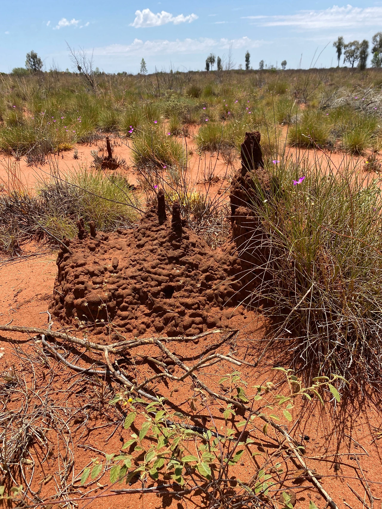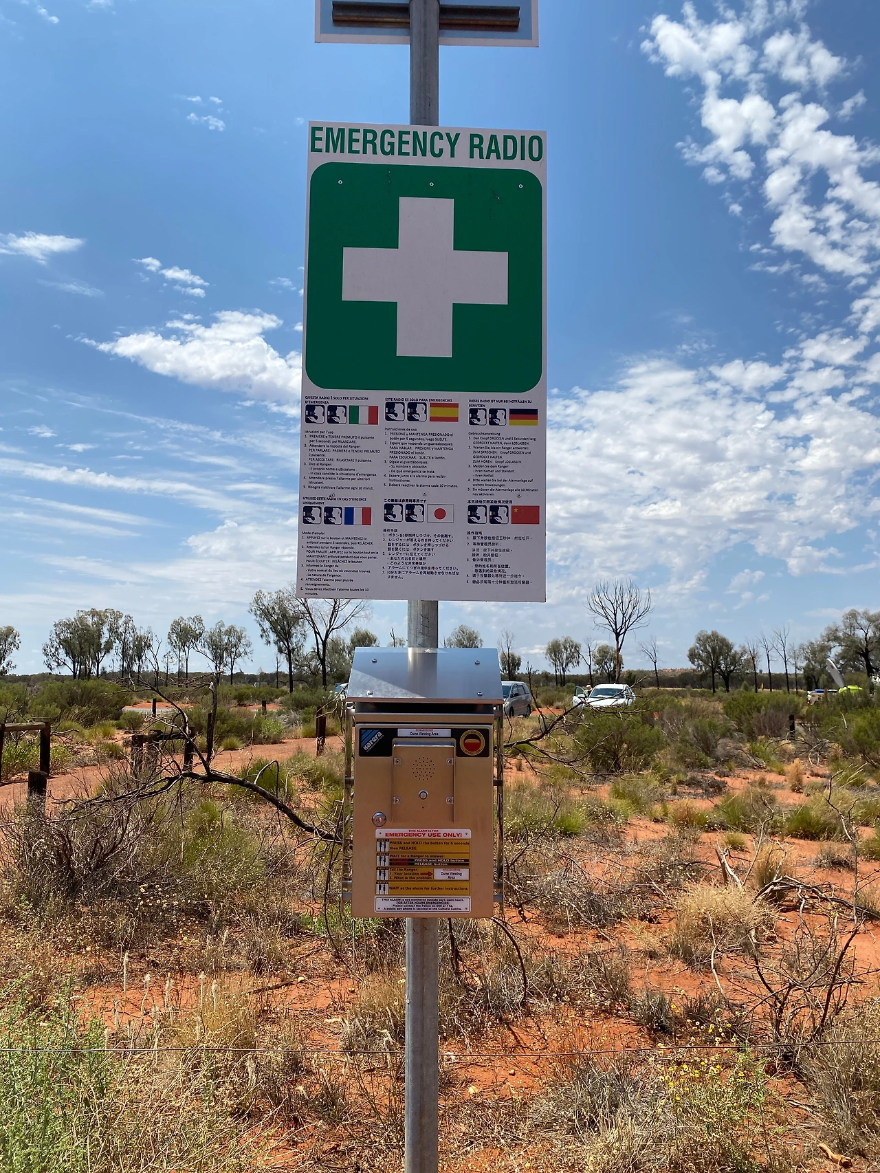 개미집이다. 흰개미 집인지는 알 수 없지만 호주 다윈에 가면 30m 높이의 개미집을 볼 수 있다고 했는데 이게 바로 그 개미집의 초기 모양이 아닐까? 사막임에도 불구하고 꽤 많은 종류의 나무들과 식물들이 서식하고 있다. 사막에 살고 있는 새들과 곤충들을 철망 없이 자연 그대로 감상할 수 있는 곳이다. 곳곳엔 자연적인 발화로 인해 검게 타버린 나무들도 보인다. 전망대를 내려오는데 국립공원 직원분으로 보이는 분들이 응급 전화박스(emergency telephone box)를 점검하고 계셨다. 이런 사막에선 조난 구조를 위한 시설은 필수다. 응급 환자가 생길 수도 있고 야생 동물을 만날 수도 있으니까.