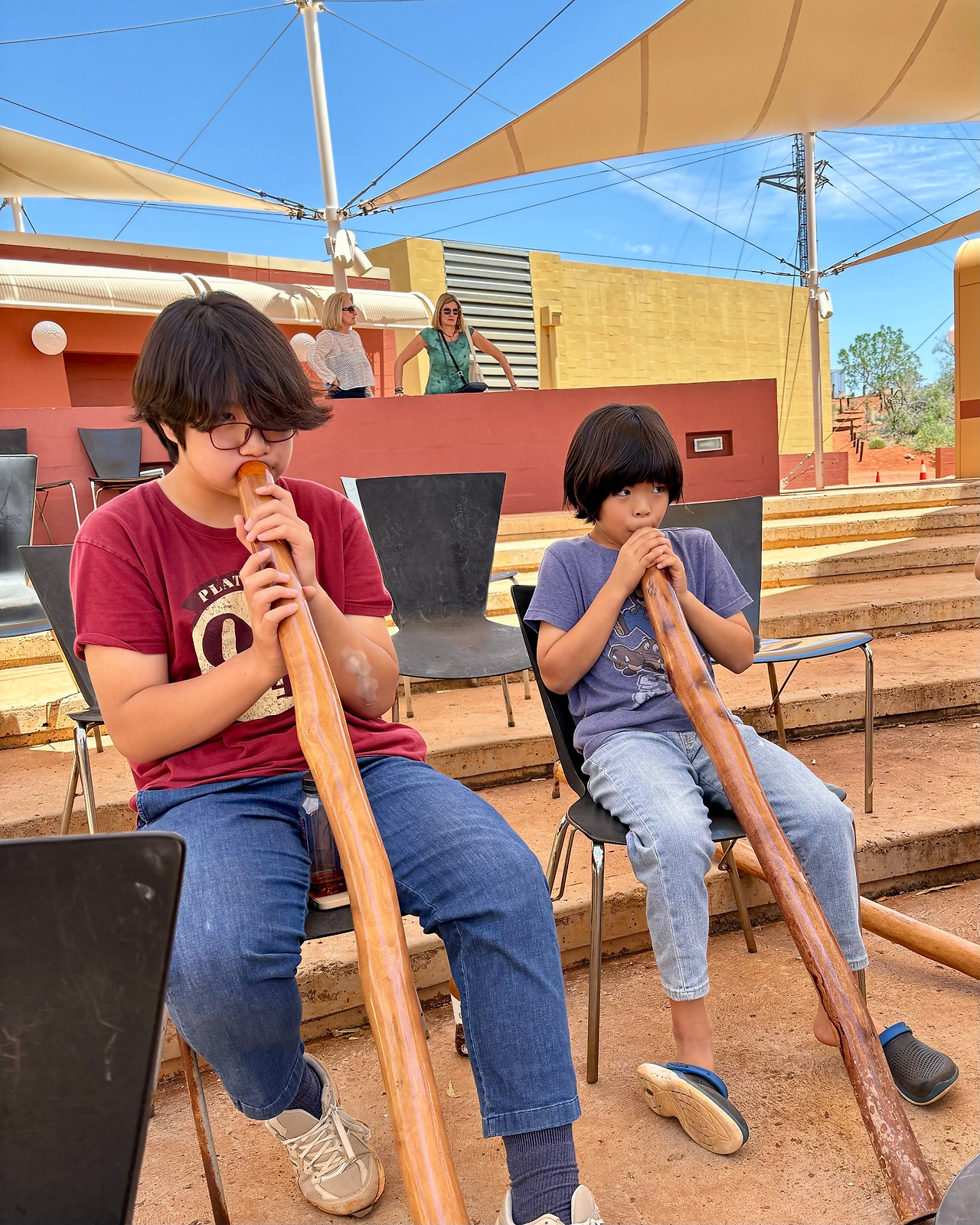 울루루를 떠나는 날 아침 11시에 호주의 전통악기 디저리두 워크숍이 있다고 해서 좀 빠듯한 일정이지만 참여해 보기로 했다. 지환이와 려환이가 워낙 다양한 음악과 악기에 관심이 많고 게다가 무료이기 때문이었다.