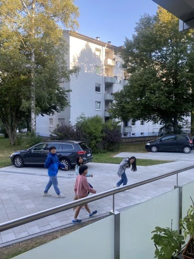 아이들은 오랜만에 만났지만, 윤 자매의 안내로 집과 주변을 돌아보고 자전거도 타며 독일에서의 첫날을 일상처럼 편안하게 맞이한다.