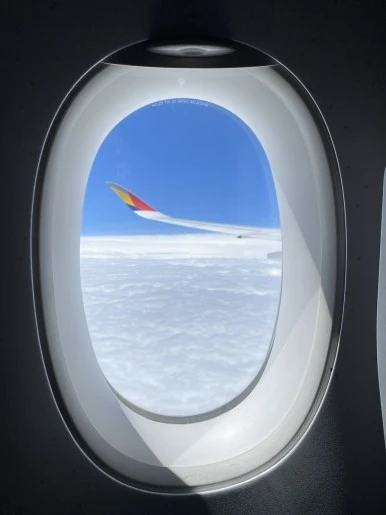 오전 비행기를 타니 창밖에 파란 하늘과 구름이 참 이쁘다. 그래서 요즘 유행하는 SNS 릴스 찍기에 도전해봤다. 손가락을 비행기 파란 하늘이 구름 위에 보이는 창문에 대고 one two three four 따라딴따 따다다~ (Dakwahmurni) 혼자 여러 차례 찍다 보니 피식 웃음이 난다.
